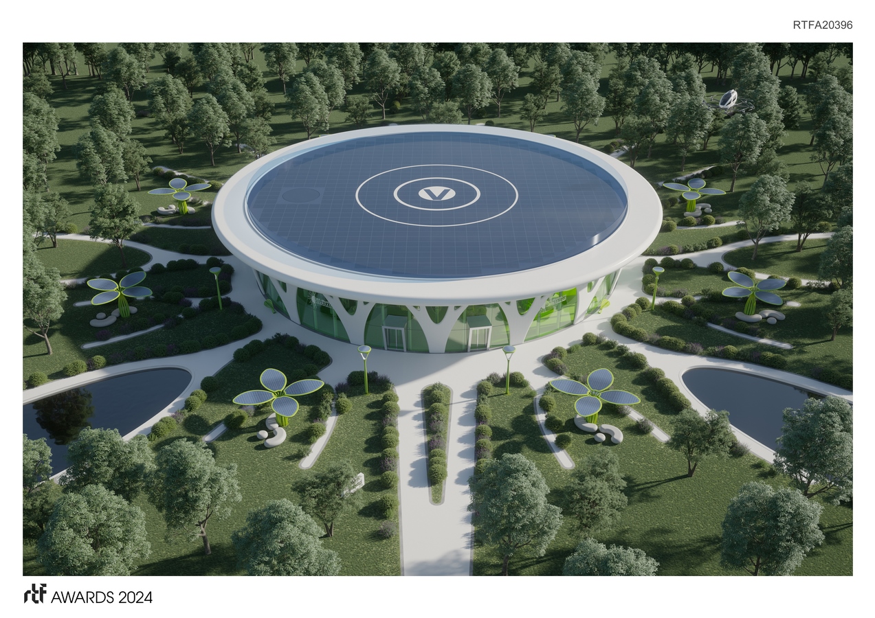 Large structural trees over 6 m high, made by WASP in eco-cement 3D printing, will support with their branches an extensive photovoltaic roof capable of generating 200 kWp energy and collecting and accumulating rainwater, which can then be used for irrigation of the park. In addition, thanks to the collaboration with eVertiSKY the roof will become a small vertiport, equipped with a telescopic lift and landing platform for electric passenger drones, useful for observing the forest from above.