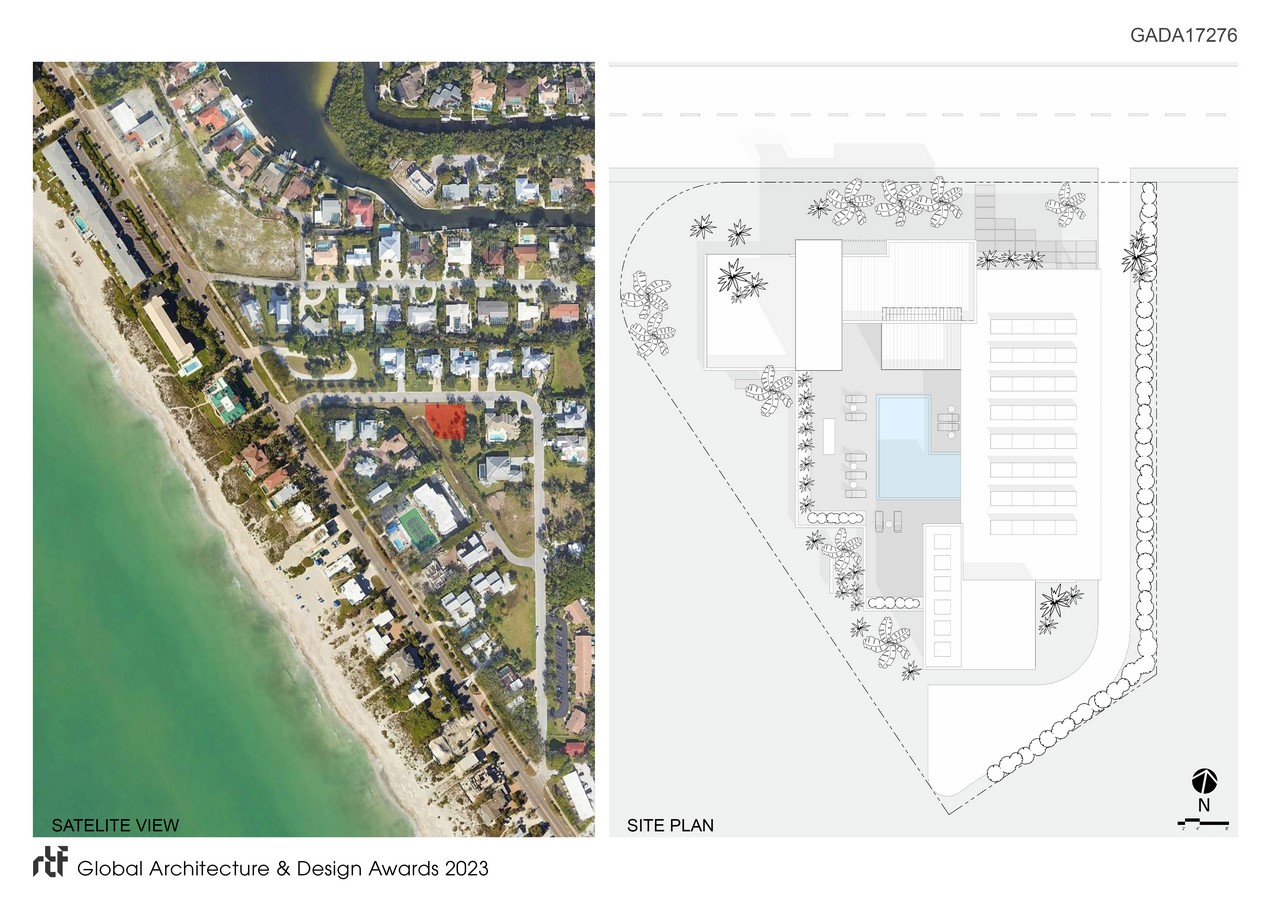 This 3,200 sf single-family residence is located on an atypical triangular-shaped property adjacent to a substantial undeveloped platted street on Longboat Key, Florida. The project was conceived as a new primary residence for a young northeastern couple relocating to Florida. Their interests were to have this be both a home and a retreat for family and friends to come over and visit for extended periods of time.