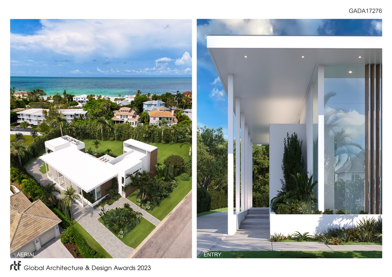 Sustainability goals included reducing dependency on the power grid with a focus on nature. The result uses as many passive systems as possible (natural daylighting, ventilation, shading) as well as the integration of active systems (solar energy capture, recycling/renewable materials, water collection, indoor air purification, and data system integration/automation). LEED Platinum certification is anticipated. Addressing risks from hurricanes and environmental change, the property is in an AE floodzone which requires the first floor to be elevated 10’ above sea level, but the entire project was elevated an additional 2’ to protect it from potential flooding.