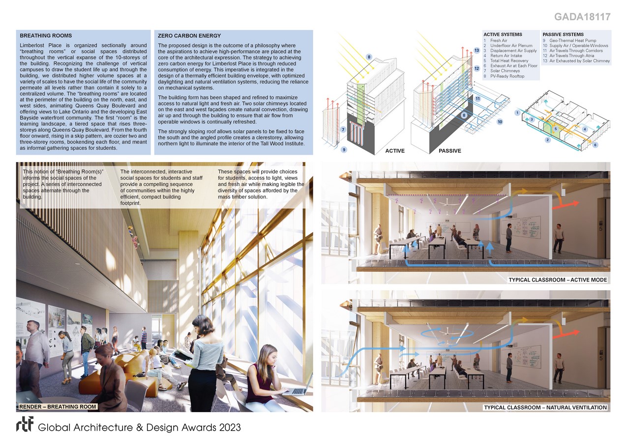 Limberlost Place combines structural innovation with advanced prefabricated tall building façade systems, as well as an optimized use of decentralized mechanical systems working in consort with passive systems, to produce a building that is the healthiest environment for both its users and for the planet.