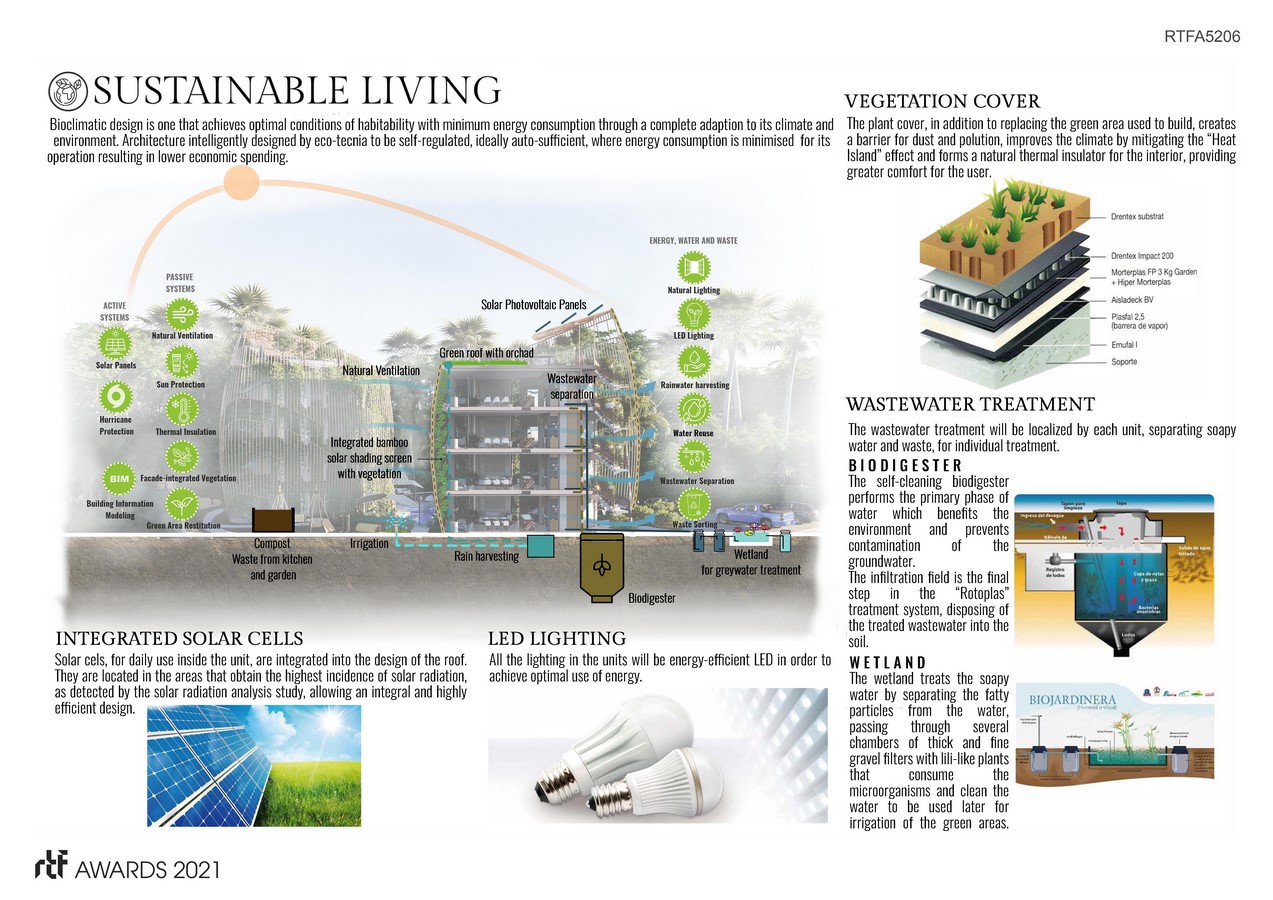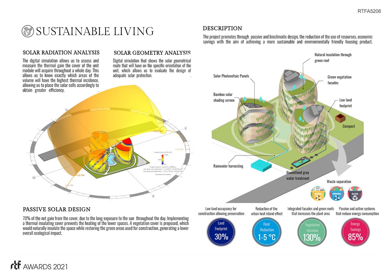 The project promotes, through passive and bioclimatic design, the reduction of resources use, with the aim of achieving a more sustainable housing.