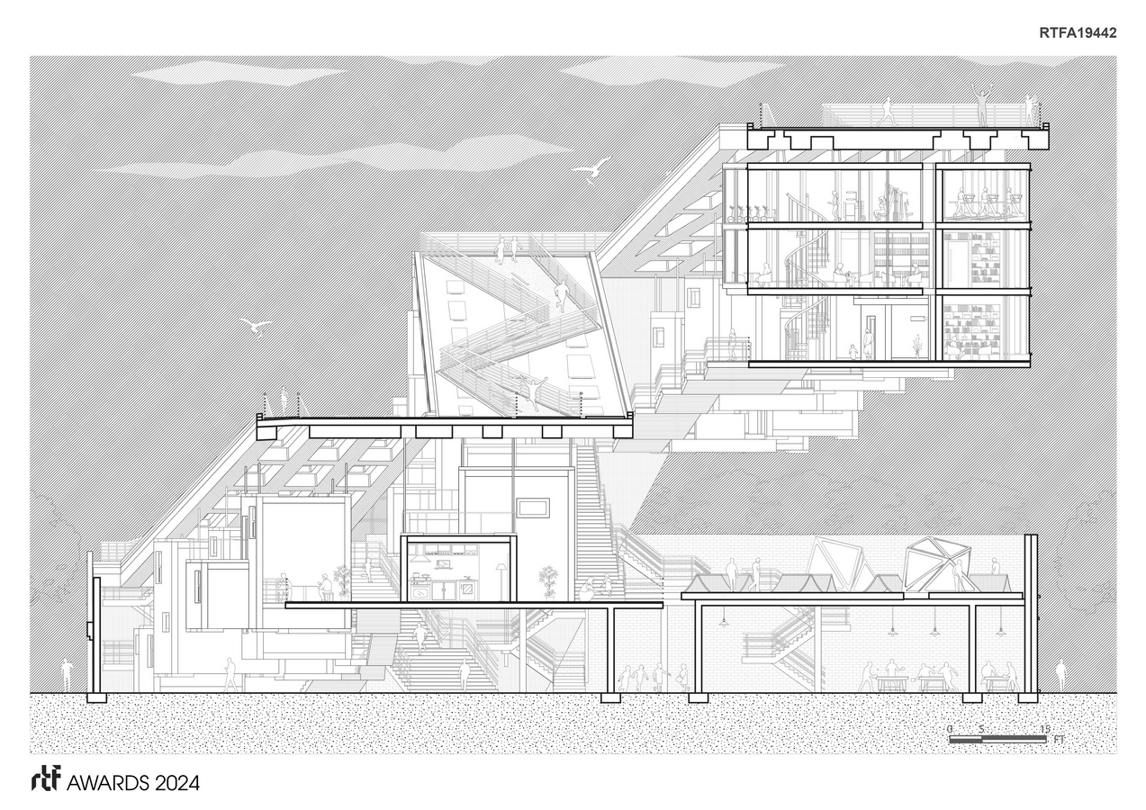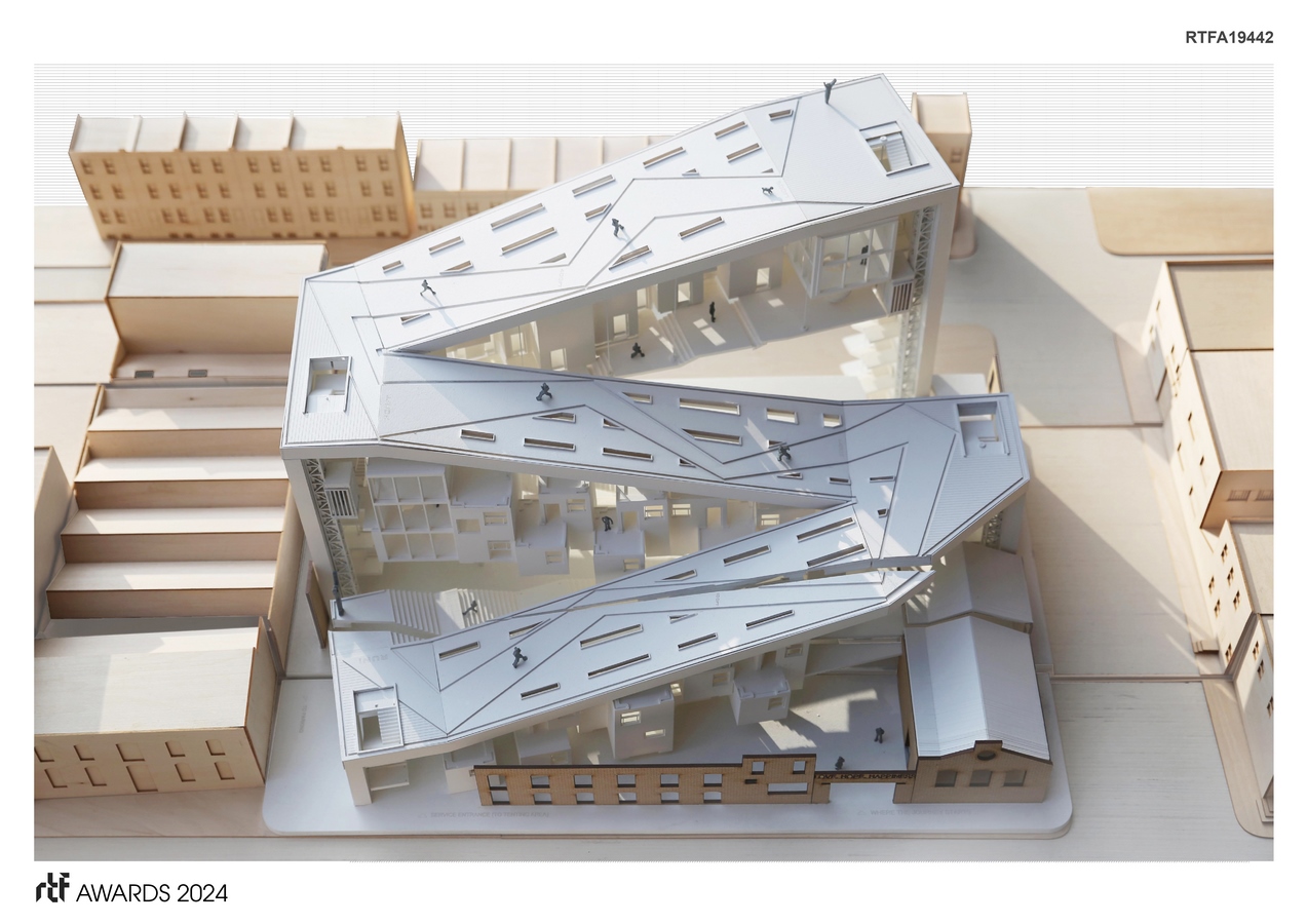 Symbolically, the building’s slope represents the journey of overcoming challenges and achieving success, echoing the struggles and triumphs of its inhabitants. It serves as a beacon of hope and opportunity, offering a tangible pathway for individuals to rebuild their lives and pursue their aspirations. In conclusion, this project transcends mere architectural design; it embodies a vision of empowerment and transformation for the homeless population of Philadelphia. By providing not just shelter but also opportunities for growth and community integration, it aspires to create a more inclusive and compassionate society.