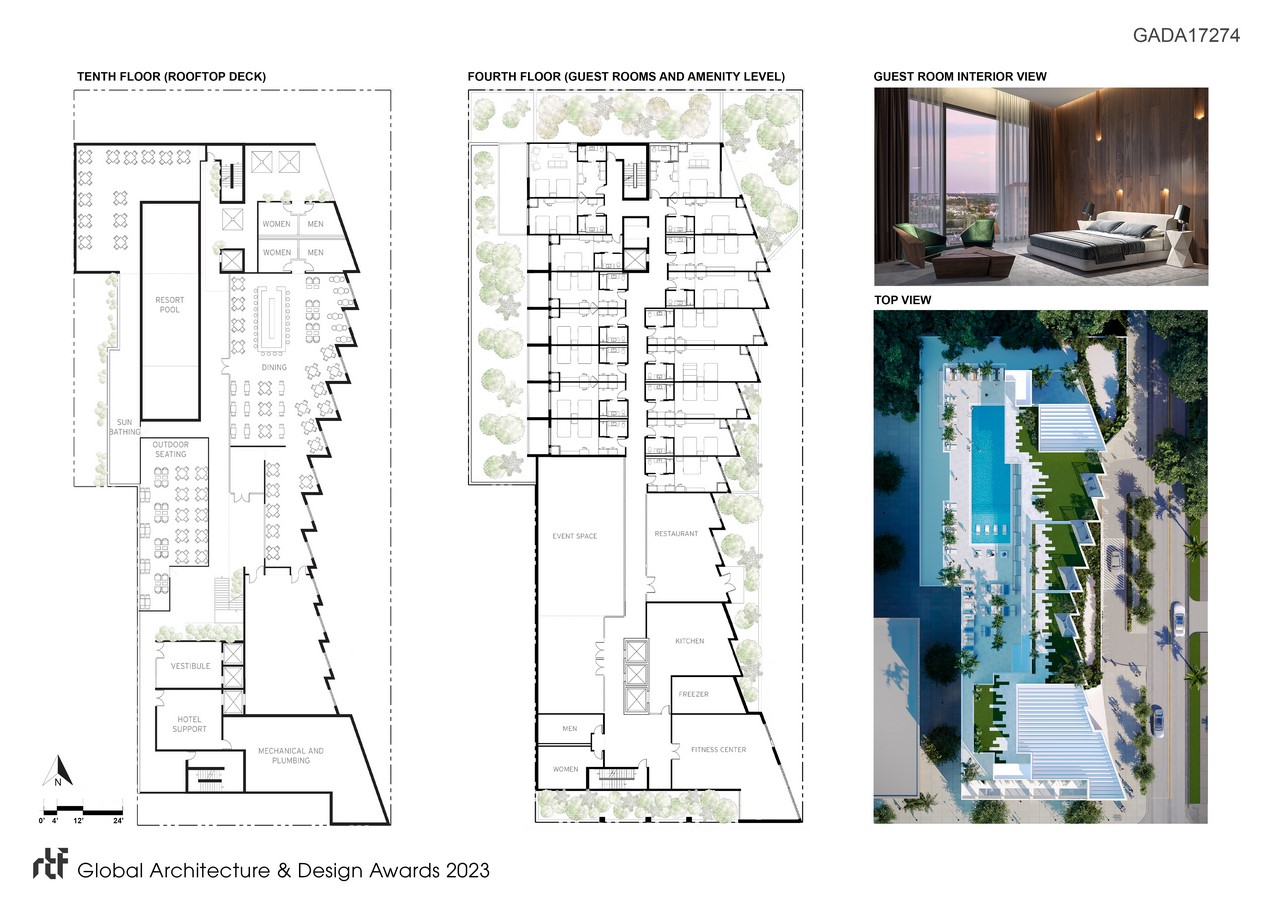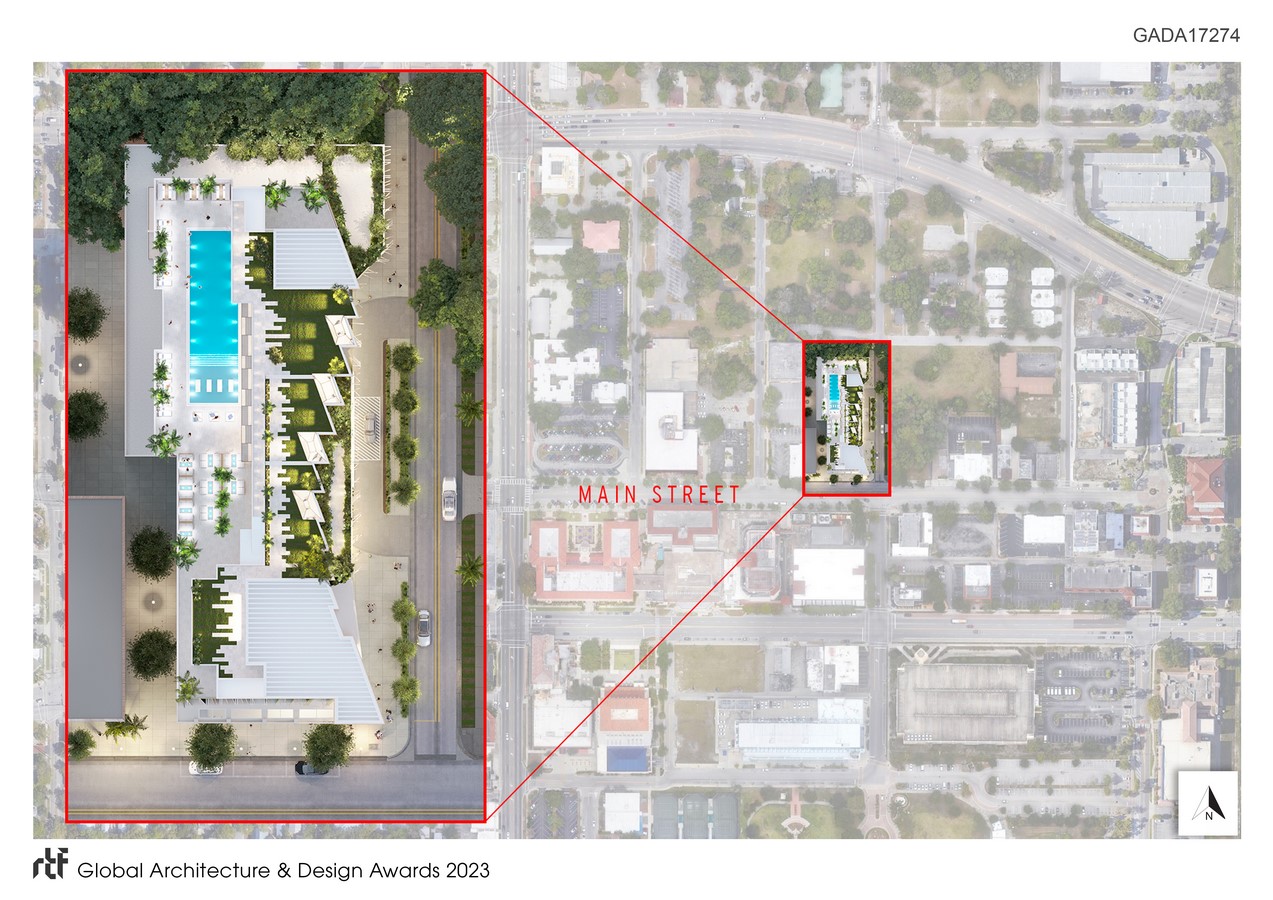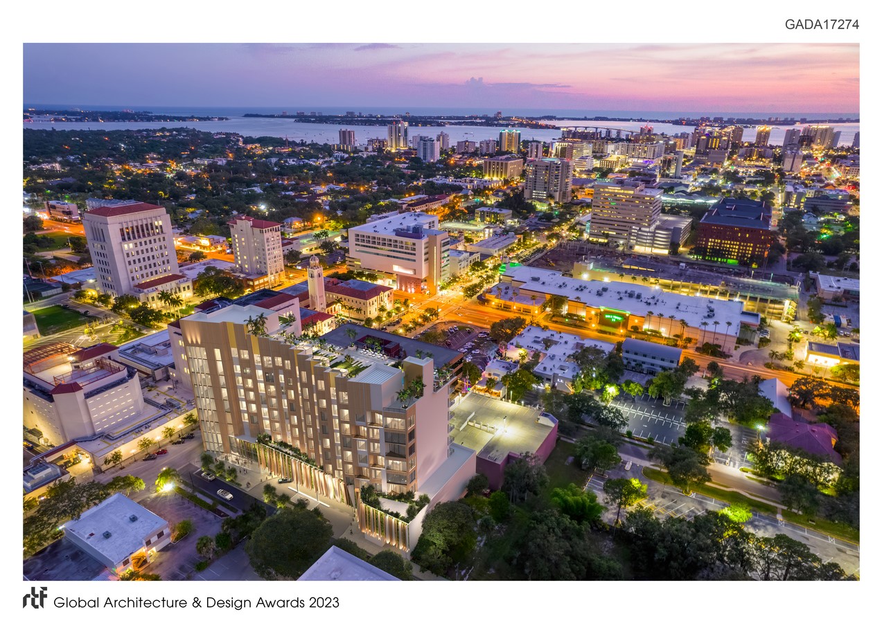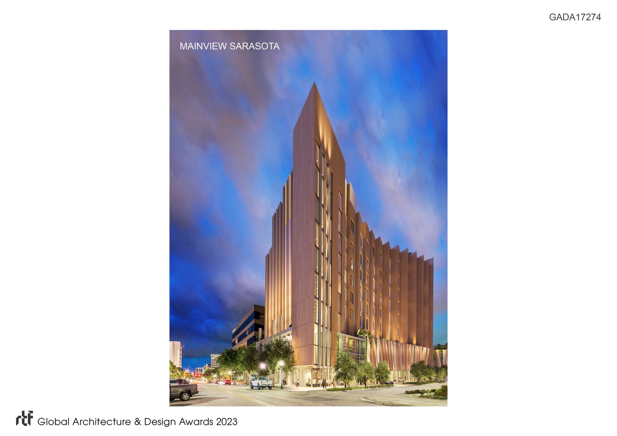 Proposed for Main Street east of Downtown Sarasota, Florida, MainView Sarasota will be a 4-star contemporary hotel and event space that inspires and connects. The challenge of this design is to create a landmark hotel that brings new life and connectivity to an overlooked area of downtown Sarasota.
