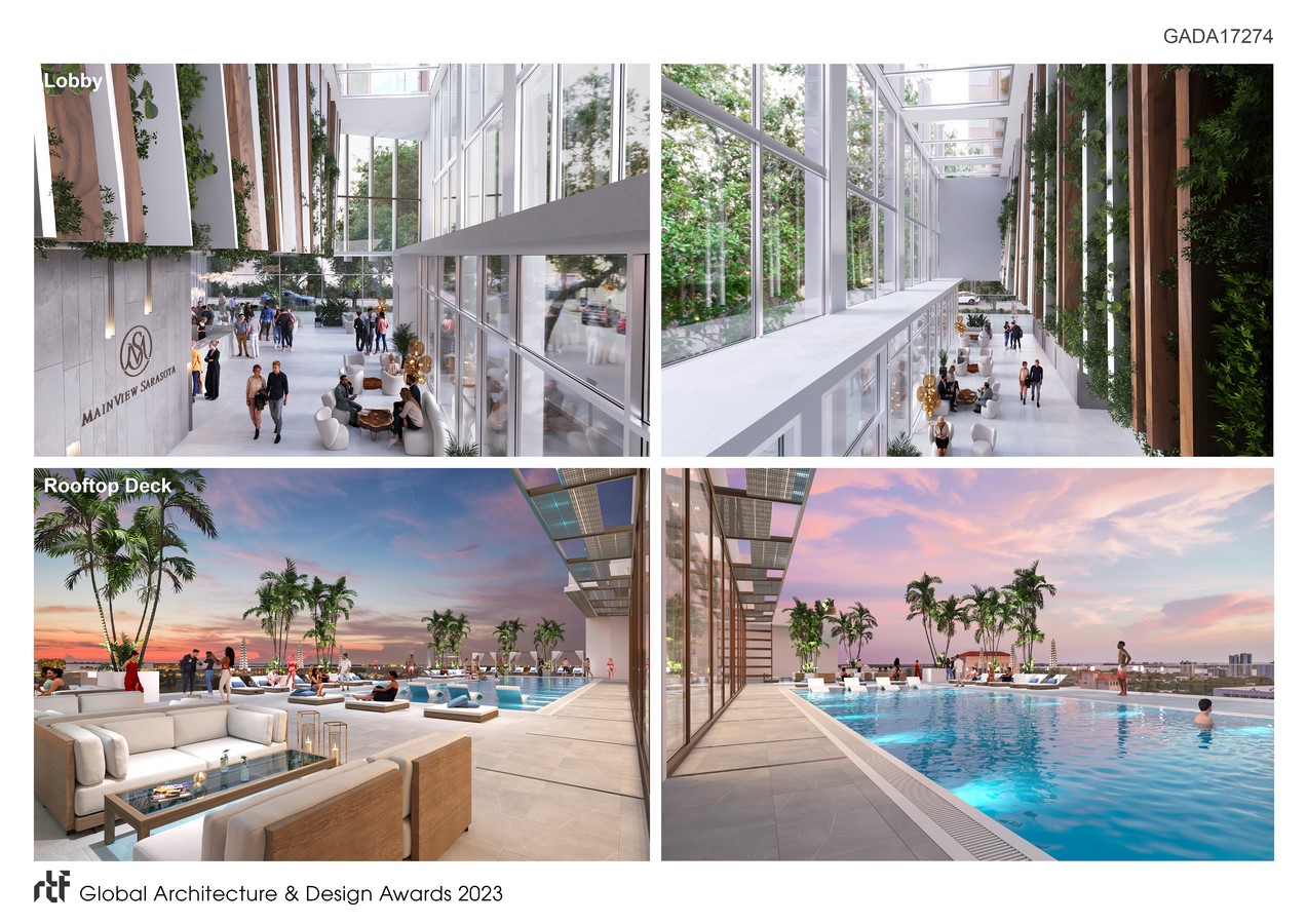 Currently, the “upper Main Street” area is stagnant, with few activities for the community to enjoy and interact in. In this area, people have work and a home but are missing a “third place” – one that brings people together and nurtures daily human interaction. Responding to an urban sprawl growing nearby, the architect and team envisioned a destination that pulls this vibrancy in and activates the entire area. MainView will accomplish exactly this, bringing the neighborhood, streetscape, and cityscape together with an emphasis on sustainability and wellness. With the motto, “Unwind in Nature”, MainView is designed to be a green oasis within an urban setting. The goal is to provide guests with a cohesive experience starting with the moment of arrival at the street-level lobby to exploring the multiple roof gardens.