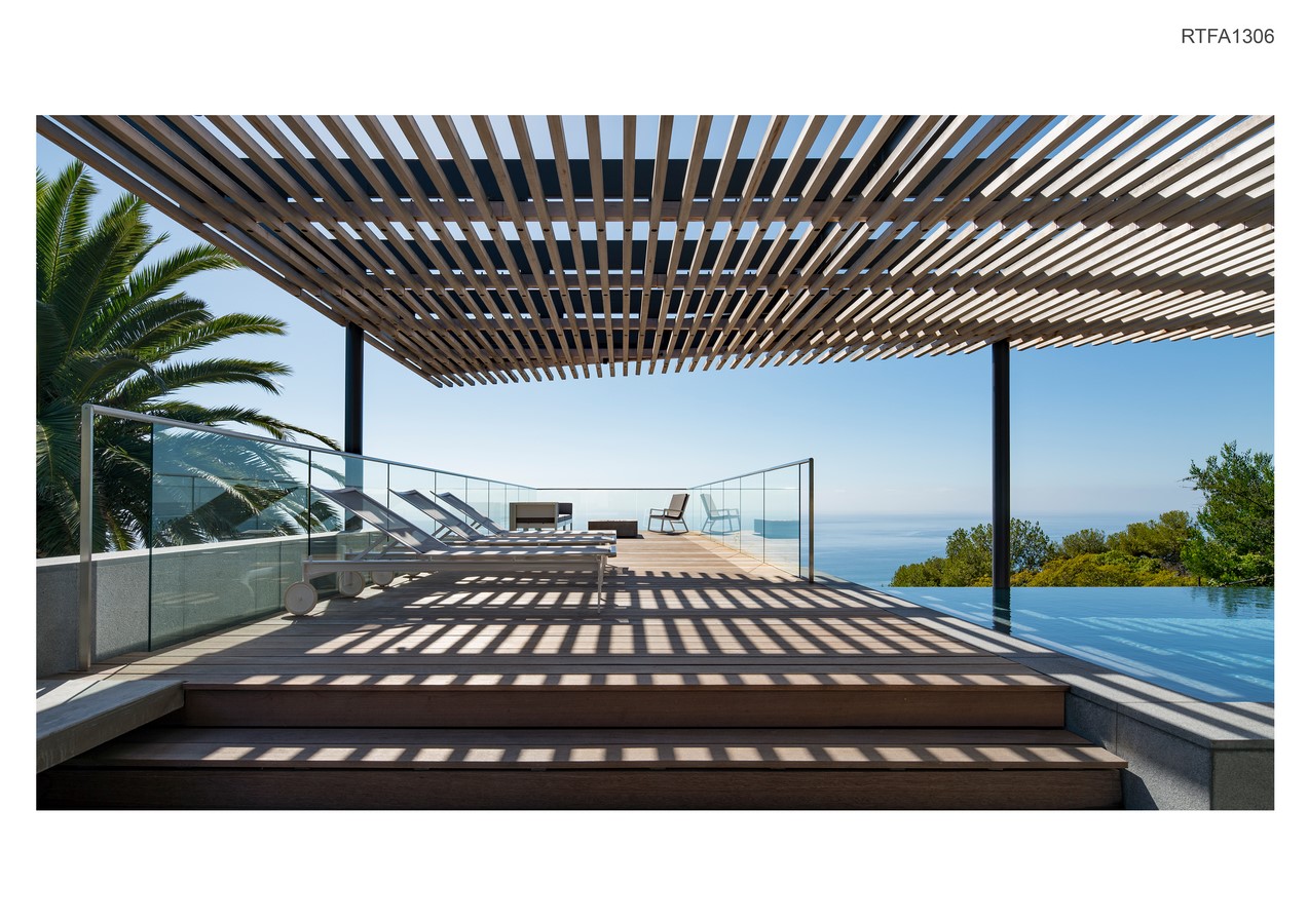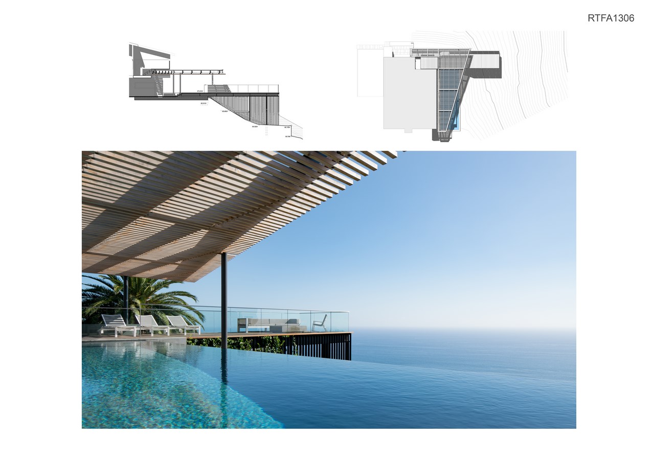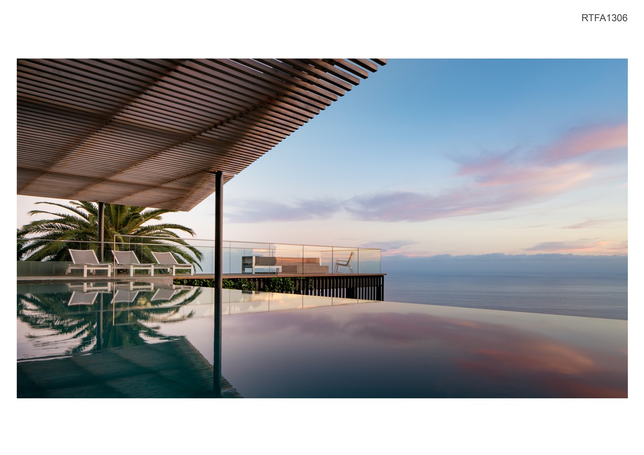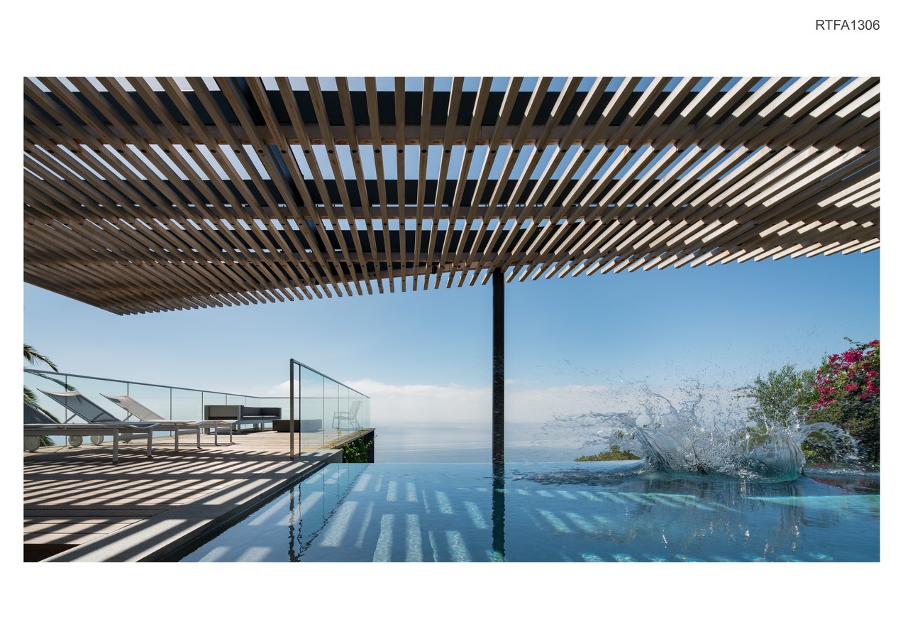A southwest-facing slope overlooking the Pacific Ocean is reconfigured with the addition of a pool, terrace, arbor, and landscape. The project creates a visual ‘frame’ for viewing the horizon; bringing together light, shadow, water and sky in an effort to blur the distinction between wet & dry, here & there, inside & outside, and above from below.