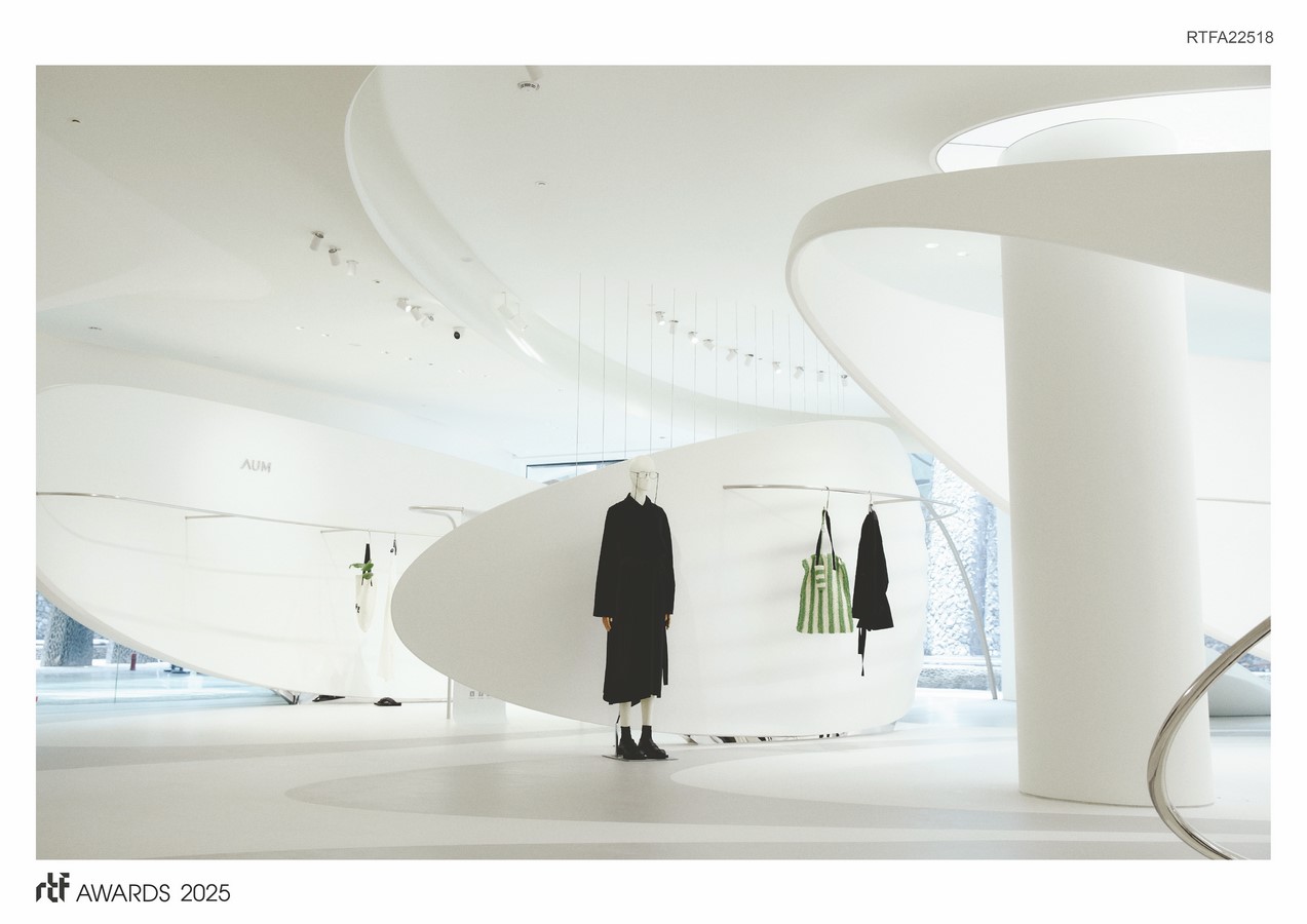 Echoing the headquarters’ original ‘butterfly-wing’ structure, the showroom’s design embodies a unifying architectural language of dynamism, with distinct elements unique to each label creating a different spatial experience to reflect their individuality.