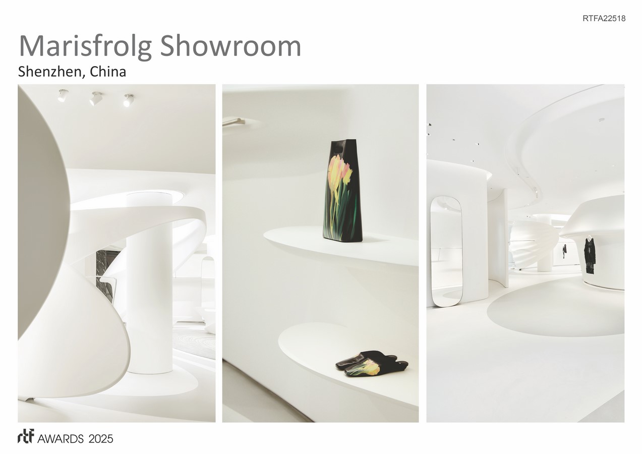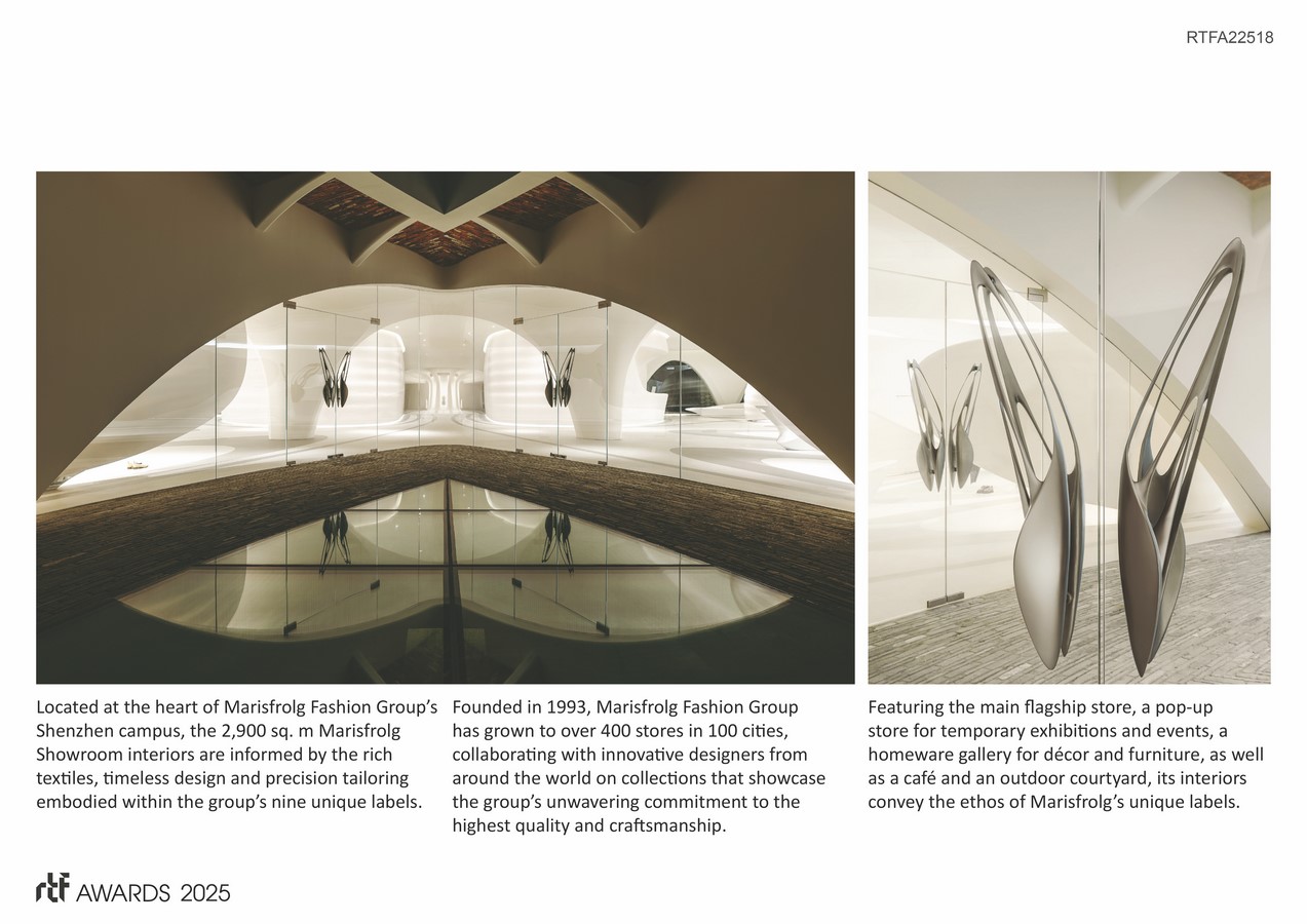Located at the heart of Marisfrolg Fashion Group’s Shenzhen campus, the 2,900 sq. m Marisfrolg Showroom interiors are informed by the rich textiles, timeless design and precision tailoring embodied within the group’s nine unique labels.