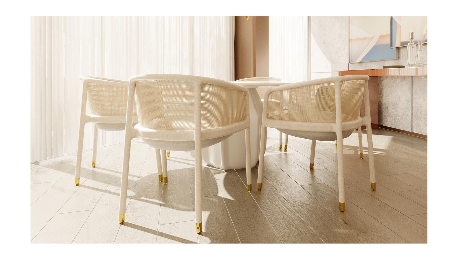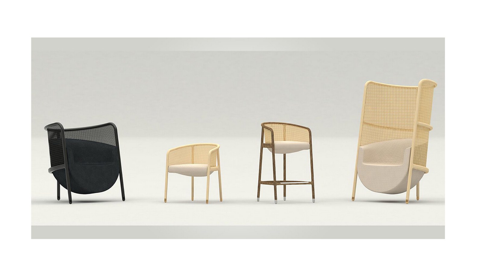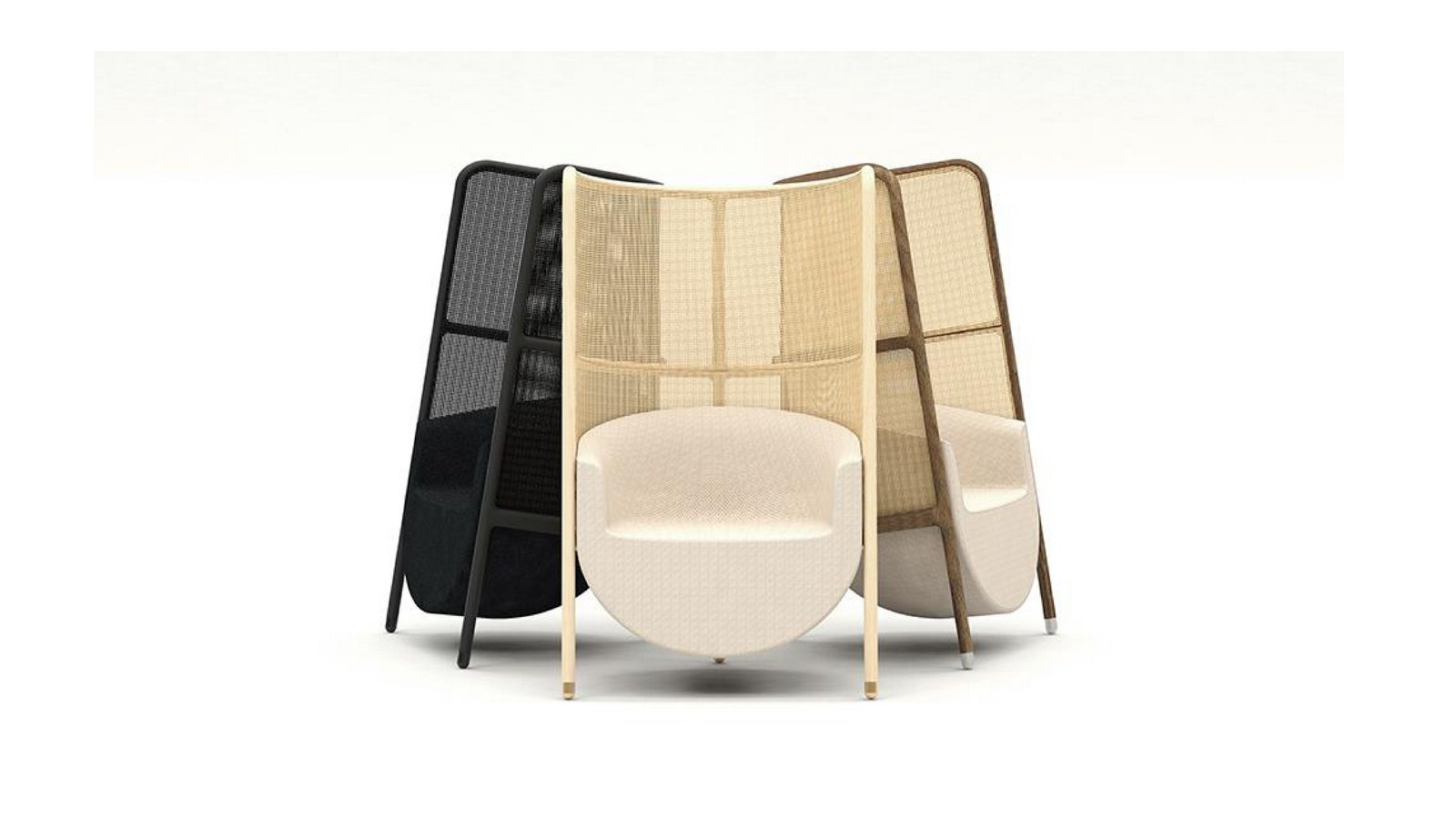 Respecting the history and refinement of fencing traditions, each piece is crafted using leading-edge CNC machining and a century-old hand-caning tradition, resulting in exactly the balance of transparency and privacy the designers had envisioned, providing the seated person with a sense of retreat and mystery.
