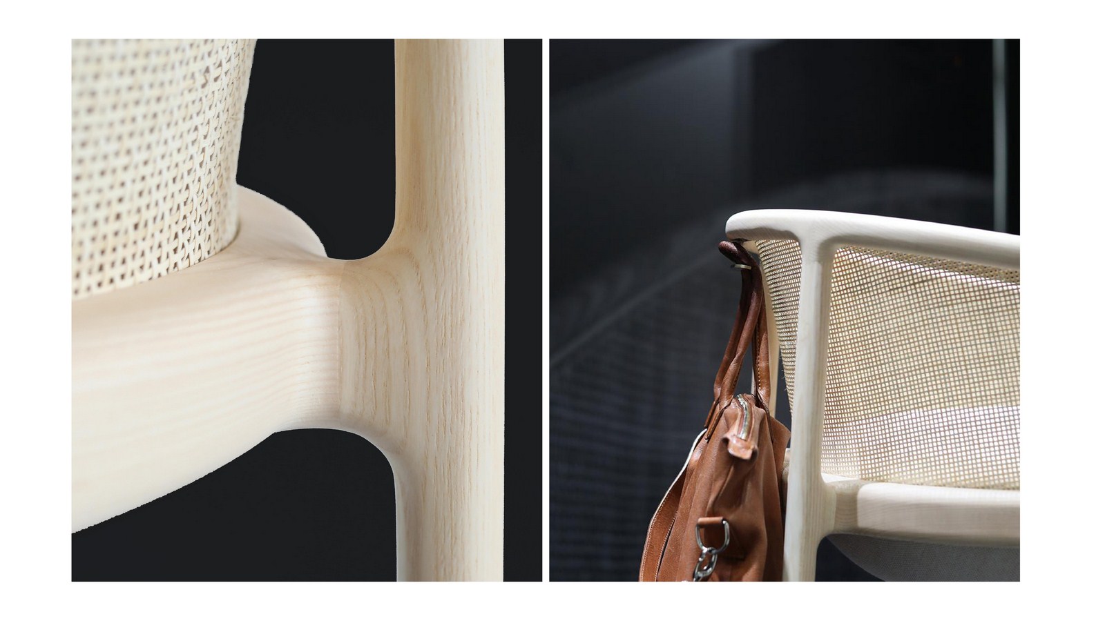 Impeccable detailing of every joint and transition of materials was considered throughout the process by combining simple lines with thoughtful elements that enhance the seated experience. Integrated hand-pulls were delicately added to the backrest rear of the dining chair, high back, and low back lounge chairs, and conveniently placed bag hooks are found on the barstool.
