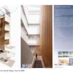 Passive measures further reduce demand: a natural ventilation system, optimized façade design, solar shading, and provisions for rooftop photovoltaics. A soaring solar chimney integrates a feature stair and drives natural airflow, serving as both environmental engine and social spine.