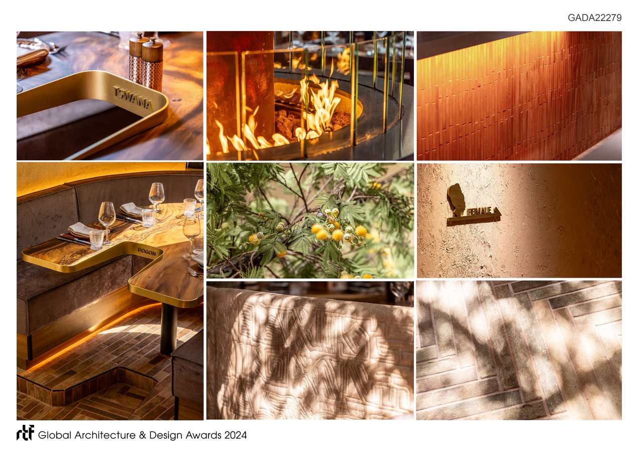 A distinctive feature of the restaurant is its reimagined Boma concept. A Boma, traditionally used as a livestock or community enclosure in Africa, is associated with safety and decision-making. Inspired by African traditions, it’s integrated with modern Australian aesthetics. The Boma units, influenced by Zulu circular kraals, feature heated booth seating that faces a central fireplace and acacia trees. This encourages interaction, balancing intimacy with community. Reflecting Zulu communal spaces, the setup fosters an inviting atmosphere for connection.
