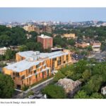 Below the Washington Street elevation, a dedicated athletics suite with a 6,000-square-foot gymnasium and support spaces extends wellness and community use while keeping practice and performance acoustically separate from academic areas. Site planning sequences safe arrivals, outdoor classrooms, and age-appropriate play, culminating in a new park and playground—created after the existing school is removed—that returns green space, including a synthetic-turf field, to students and neighbors.