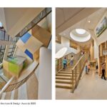 A radiating floor plan organizes grade-level sub-communities along generous daylight spines and brings them together at a central, visible collaboration zone: the Learning Commons/Cafeteria atrium. This heart of the school enables “learning rather than teaching,” making project work, exhibitions, and cross-grade interaction legible and inviting. Surrounding the commons, a media center, glass-enclosed art and maker spaces, a functional lab, and distributed breakout areas support flexible, interdisciplinary instruction and student agency.