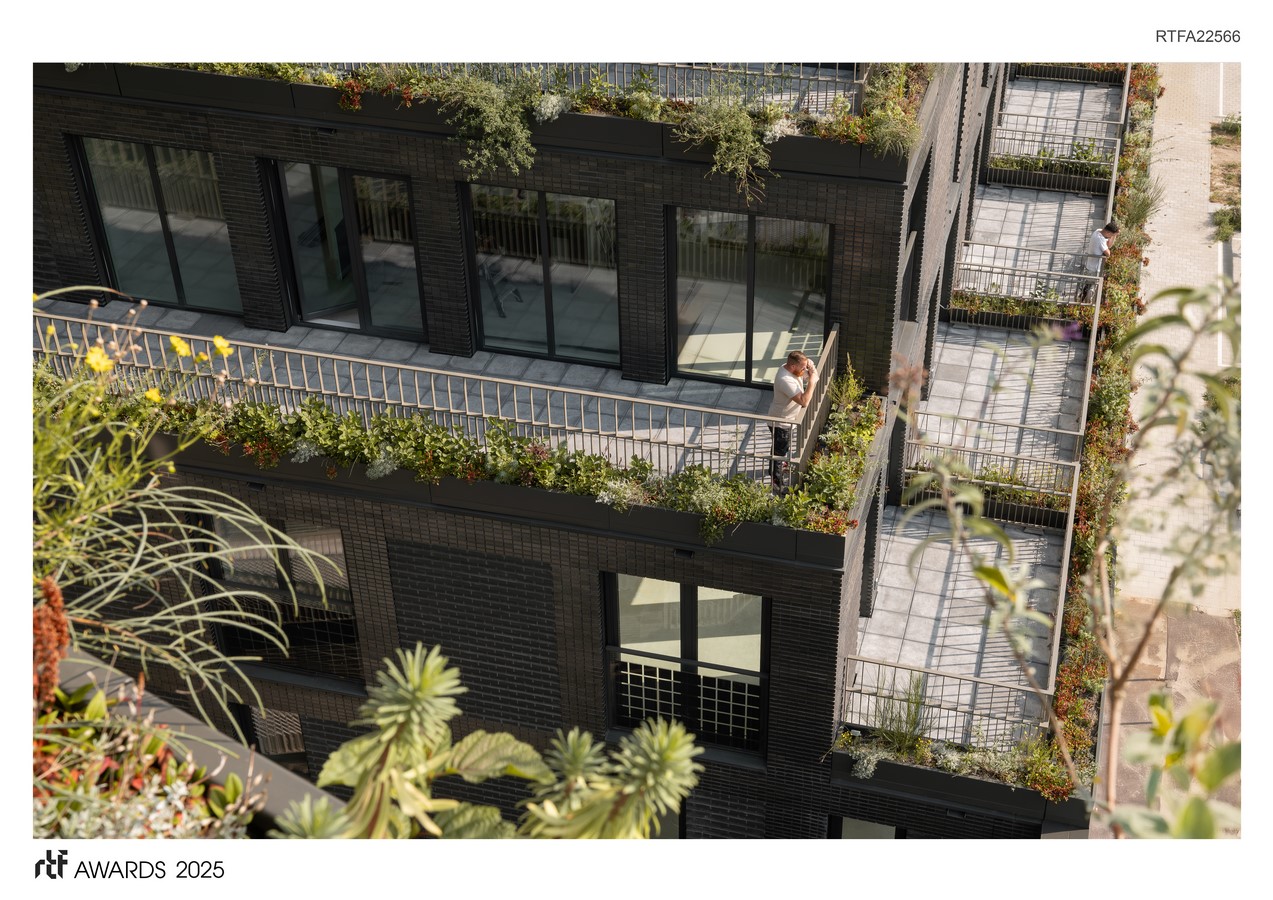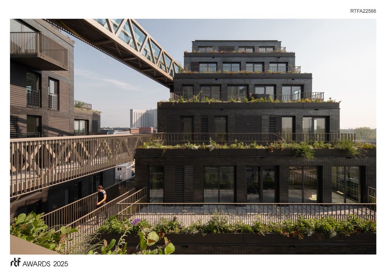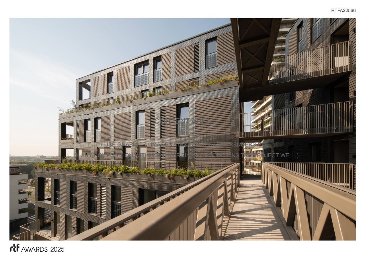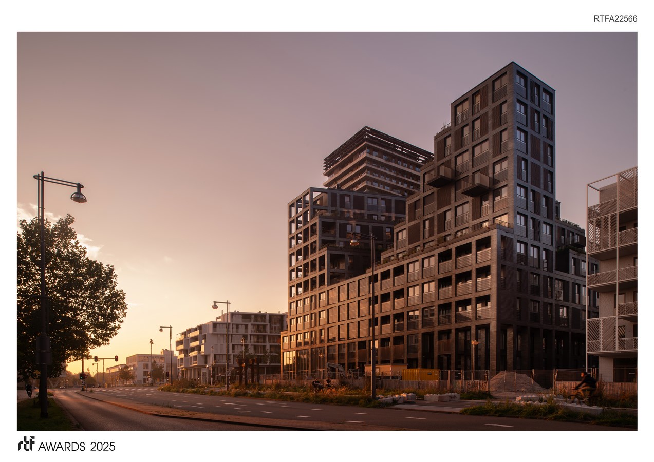 Following the ‘People attract People’ principle, Track 8 is more than a place to live—its stepped design, steel walkways, and communal gardens create natural opportunities for connection. The three high-rise volumes taper upward and are linked by open galleries, encouraging encounters. The lively ground floor and varied street-facing facades invite public life, while a prominent corner enhances the urban presence.