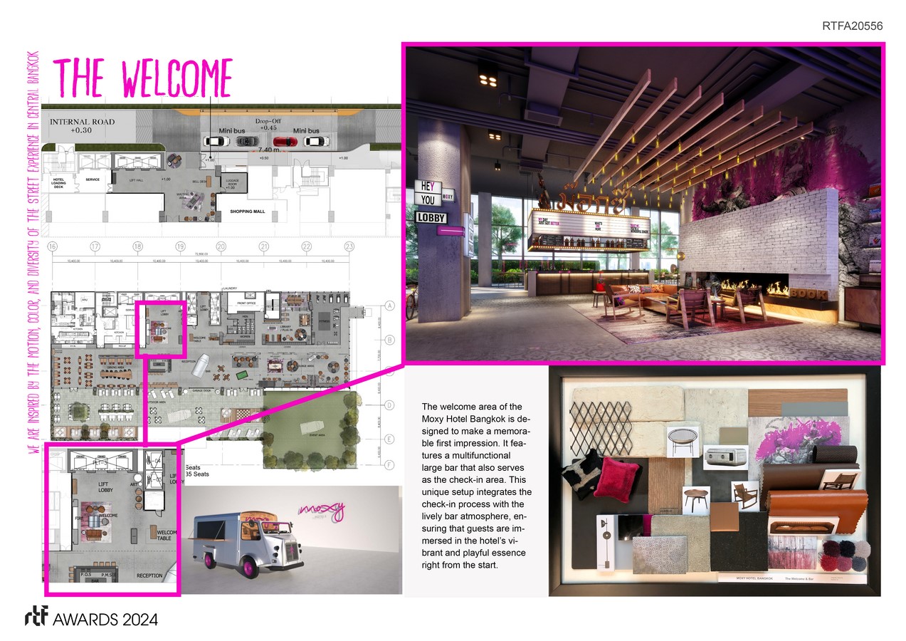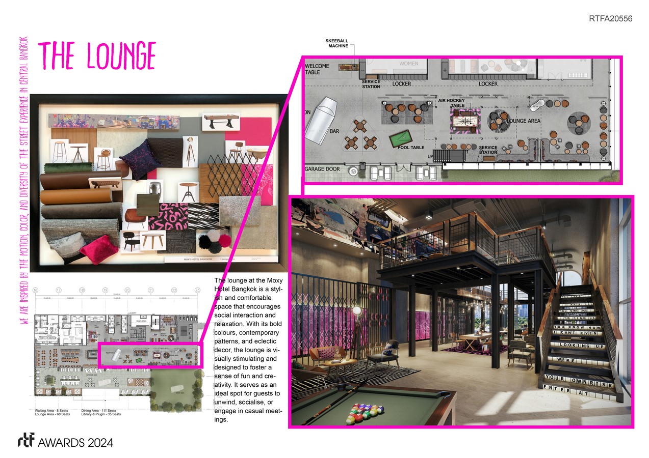 The Moxy Hotel Bangkok embodies a groundbreaking approach in hospitality design, skillfully blending local culture with urban sophistication to create a distinctive guest experience in the heart of the city. Tasked with a brief that demanded creative design execution, versatile space planning, and cultural integration, our design team developed a concept that not only respects but also elevates the Moxy brand identity.