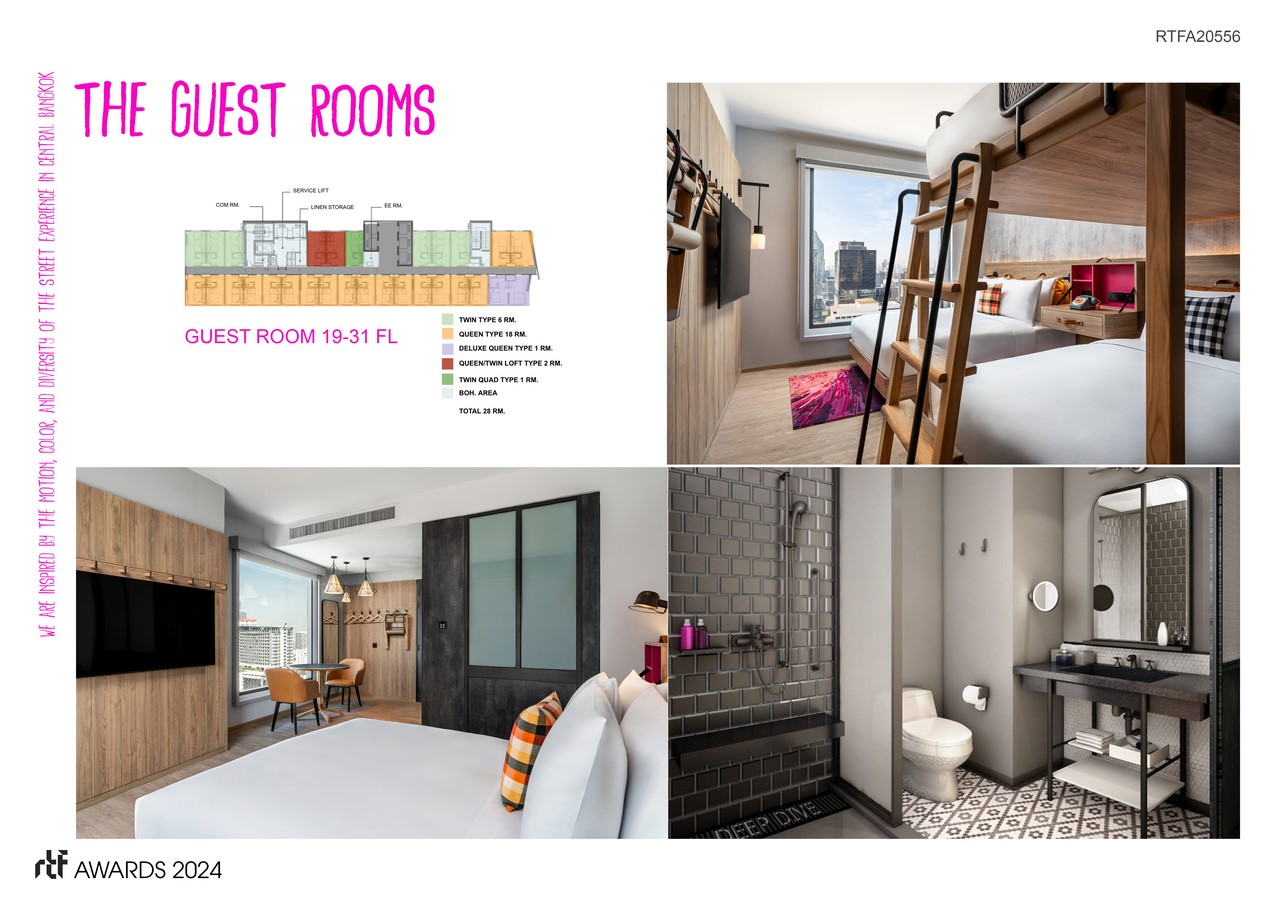 The Moxy Hotel Bangkok stands as a beacon of contemporary hospitality design, skillfully blending innovation with tradition to craft a unique guest experience that captures the essence of Bangkok.