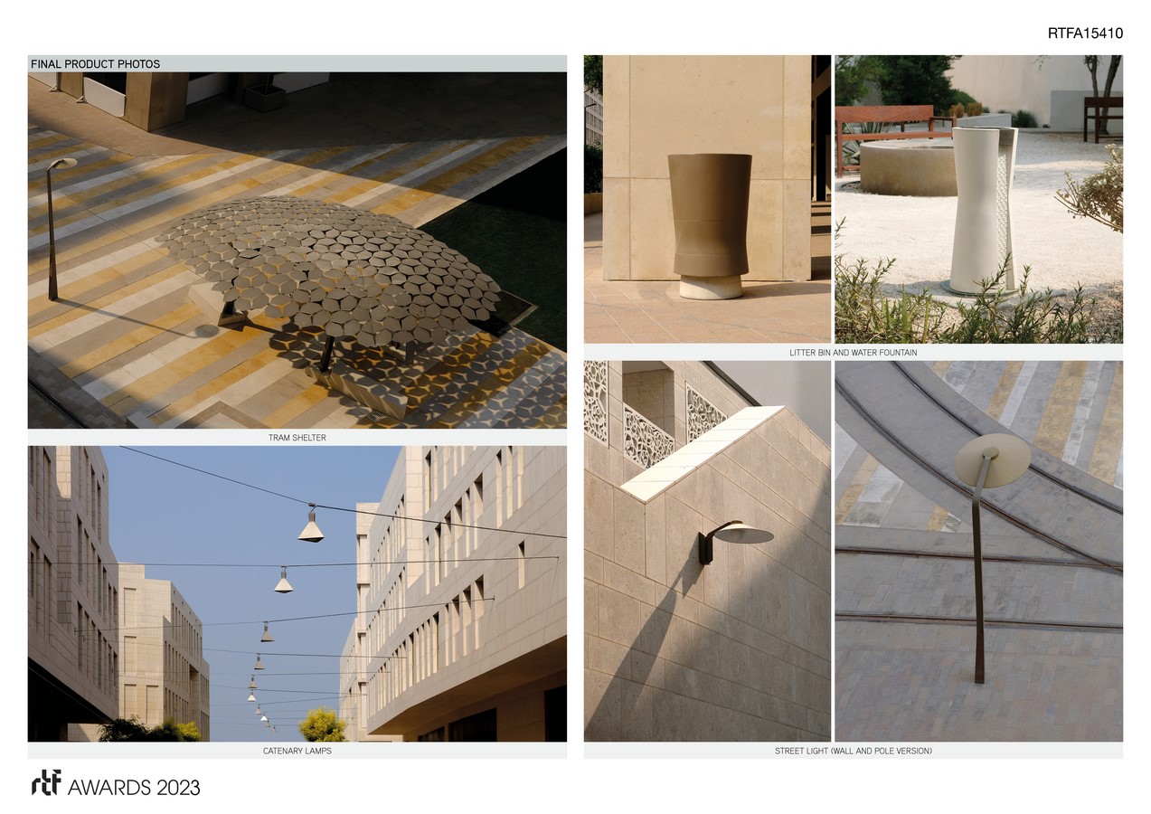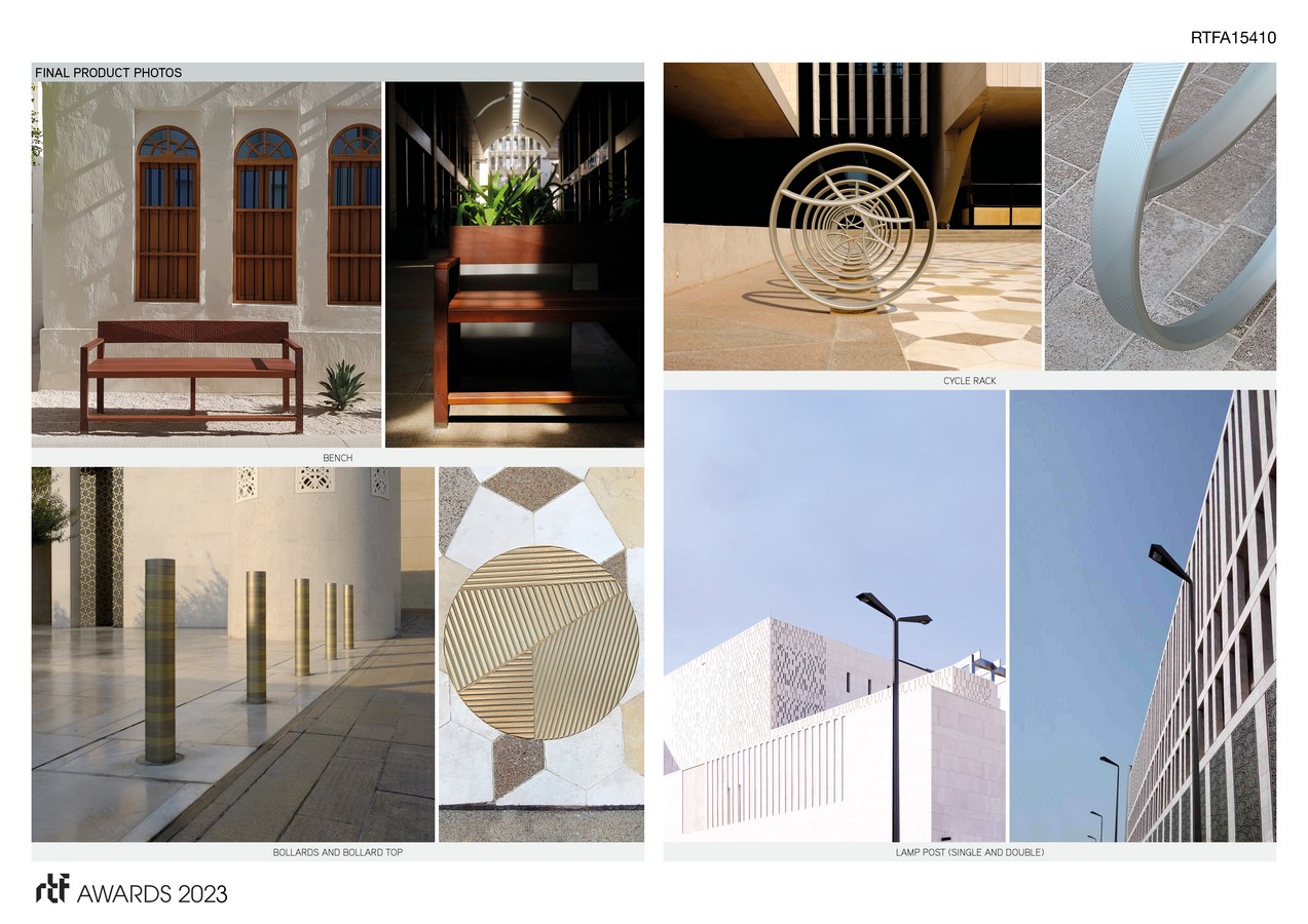 The furniture range was designed to be a core constituent of a new pedestrian orientated public realm and urban strategy for Doha’s regenerated downtown district, incorporating character area accenting, and a closely considered civic relationship with landscaping, architecture and urban infrastructure. The design conceived the site as a set of interlinked outdoor urban rooms, where carefully tailored furnishings could support and activate new patterns of behavior: Introducing a new external lifestyle across the area’s public spaces- From the ‘Barahat’ square and Boulevards at the heart of the development to the more intimate network of pocket squares and ‘Sikka’ alleys.