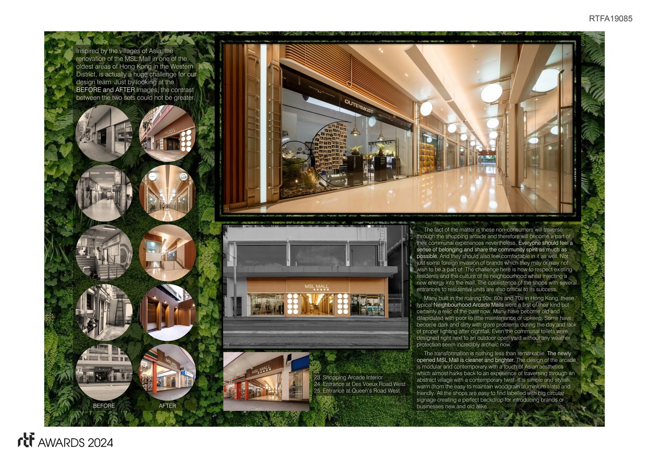 Inspired by the villages of Asia, the renovation of the MSL Mall in one of the oldest areas of Hong Kong in the Western District, is actually a huge challenge for our design team. Just by looking at the “Before and After” Images, the contrast between the two sets could not be greater.