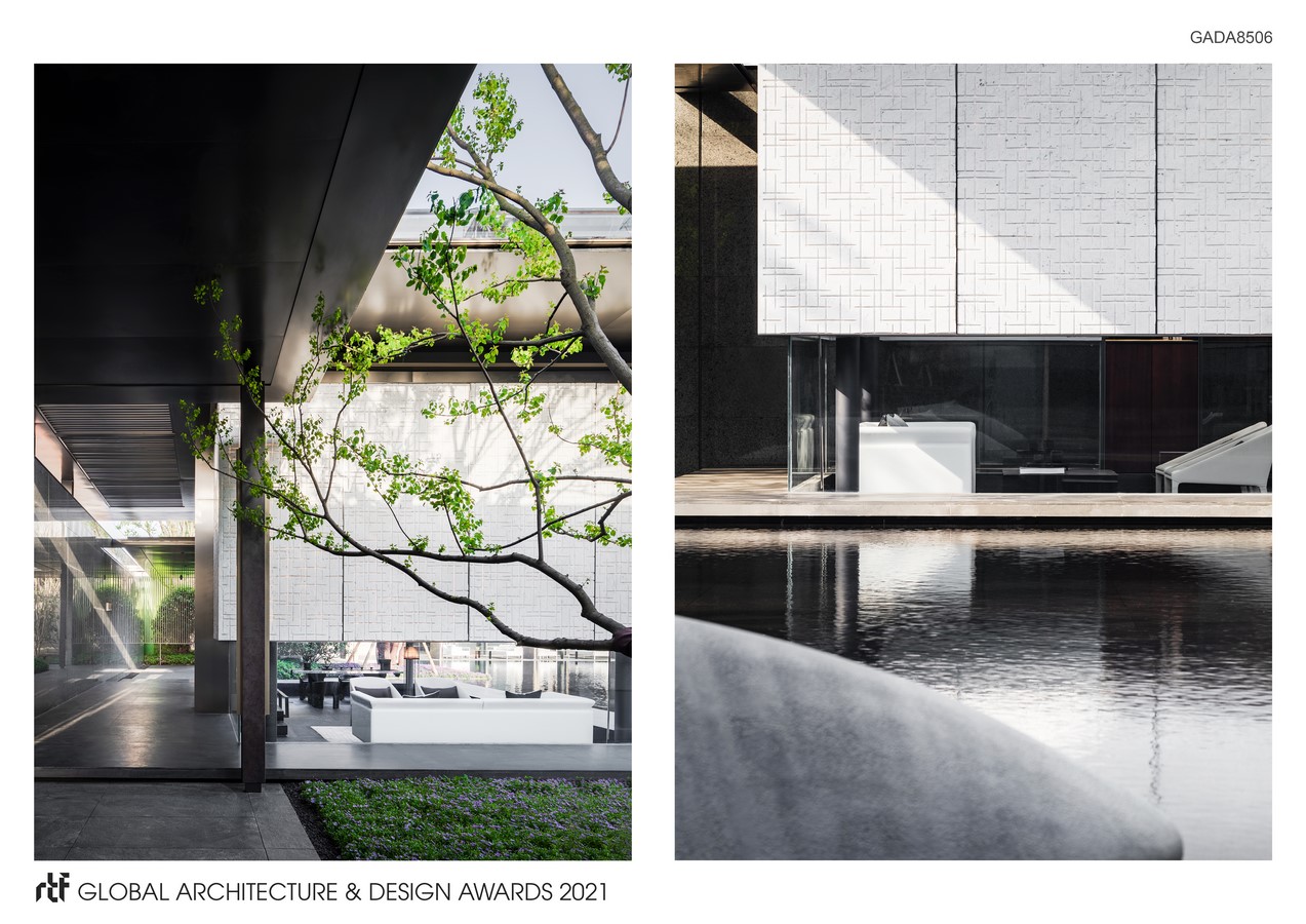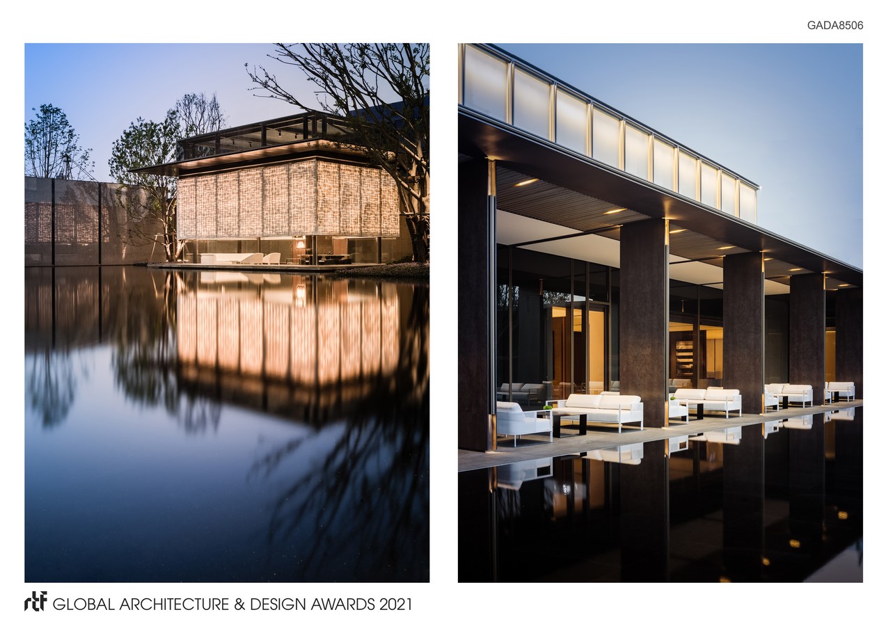 Stepping into the building, happily you are greeted with a typical oriental experience, and the “art exhibition hall” has laid down the overall space proposition on the first floor. The living room conveys a strong sense of belonging with the appearance of an exquisite living room, suggesting the nature of the service target. With the turning of the movement, the pace will slow down, and different display contents certainly pass along the path. Sand tables, models, and other artworks, and even obvious objects are integrated into the design imagination as resources, and progress at lower levels on the premise of maintaining a unified aesthetic for people, to pave the way to the climax of the central space. The rhythmic singing in the vertical direction of the building skin has received a clear response inside the exhibition space, and the internal and external volumes are firmly combined. After repeated demonstrations, an “Awareness Pavilion” was added to the central axis of the hall to face it across the water, anchoring the spatial composition with a “point”.