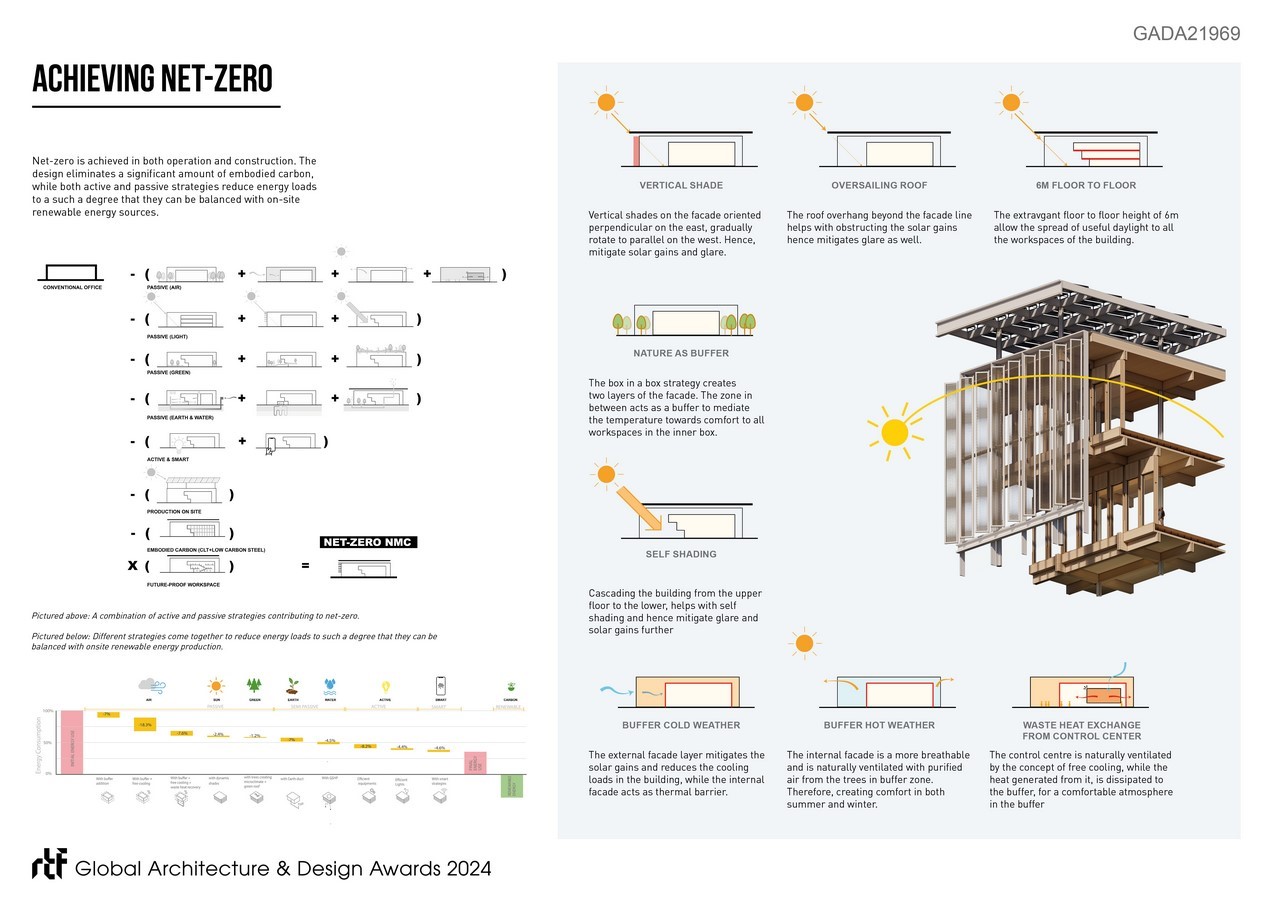 The main elements of the design for the Center, which judges called “the ideal net-zero building”, commending its “friendly-to-citizens character” and praising its “excellent decarbonization strategy for both operational and embodied carbon energy”, are: