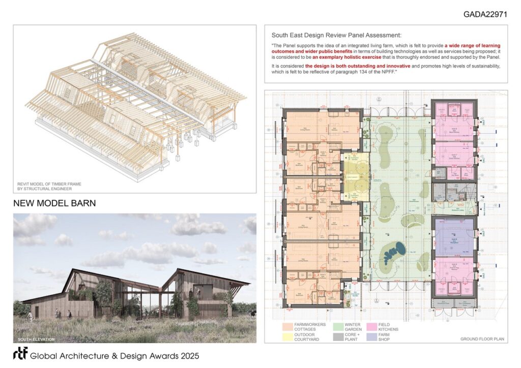 The project will provide on-site accommodation for farmworkers and their families in the most expensive region in the UK. The mix of programmes will also require neogtiation and collaboration between families, schoolchildren, local social care groups, shoppers, academics and general visitors – and will thereby encourage tolerance and generosity of spirit.