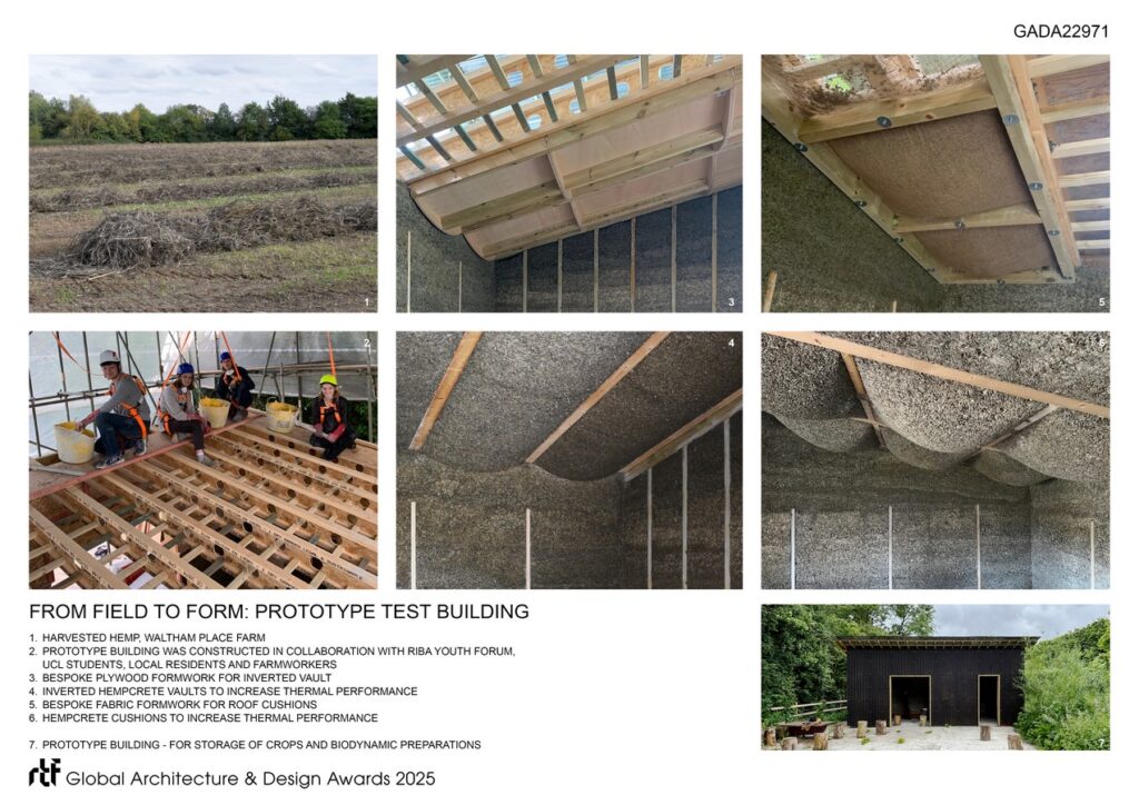 In terms of construction materials and embodied carbon: the building envelope is mainly plant-based – hempcrete (some grown on the farm), timber frame, wood fibre insulation – with hygroscopic finishes (lime render and clay plaster) and no plastic membranes in the walls. The project achieves a life cycle embodied carbon SCORS rating of A+.