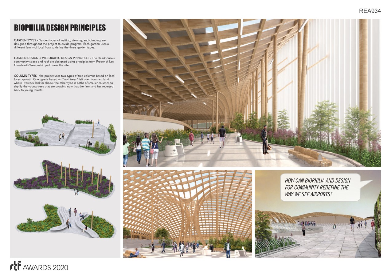 This project grounds the idea of an airport for community development with biophilia, or human’s innate need to be within nature. This project proposes that the airport of the future is one that belongs to the community, serves the larger public, and makes the city that it serves into a greater global metropolis.