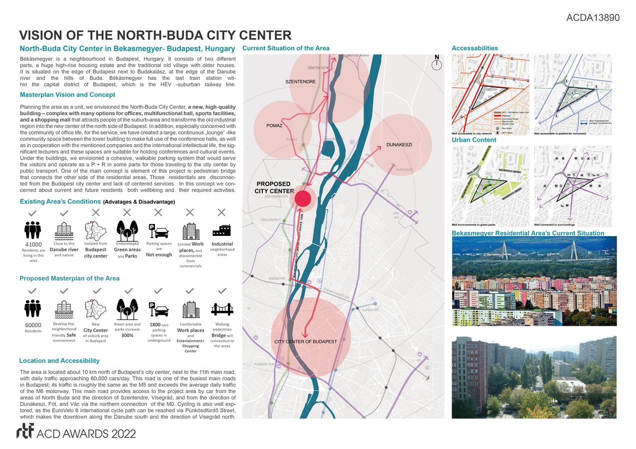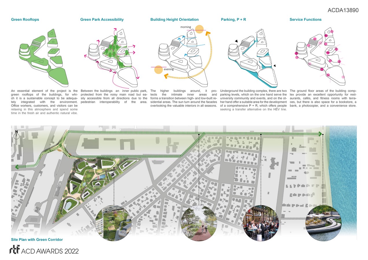 It also integrates the western areas, offering livable access to the Danube River coast for the inhabitants. The proximity of the Danube River banks is an excellent feature: the Danube shore, which can be reached on foot or by bike in a few minutes from this area. Expanding the dynamic transformation of city center spaces, the area is especially suitable for developing a complex office campus that functions as a city center, either by hosting many kinds of offices or other domestic and international universities.