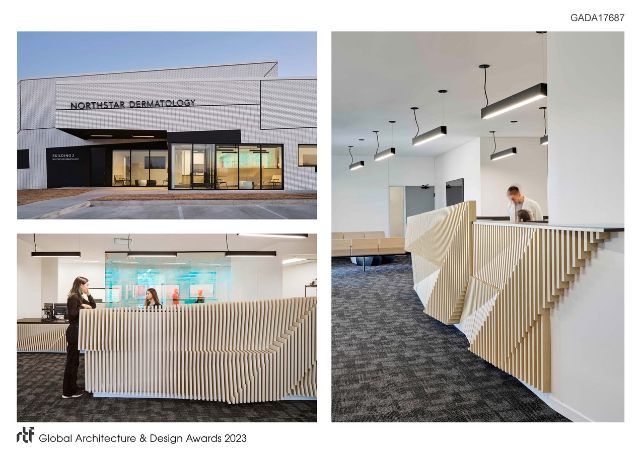 Northstar Dermatology and its surrounding campus design challenge not only the way medical facilities are built but also how they intrinsically work. By applying simulation tools to track users movement through the space and exploring alternate representation techniques such as faux brick, the building presents a contemporary interpretation of a traditional building typology.