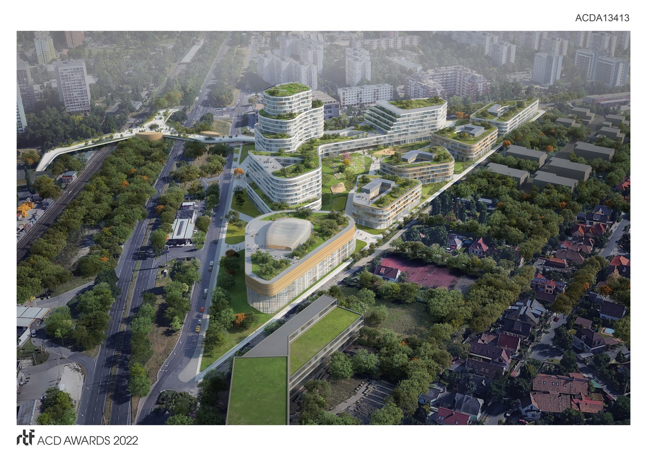 It also integrates the western areas, offering livable access to the Danube River coast for the inhabitants. The proximity of the Danube River banks is an excellent feature: the Danube shore, which can be reached on foot or by bike in a few minutes from this area. Expanding the dynamic transformation of city center spaces, the area is especially suitable for developing a complex office, a campus that functions as a city center, either by hosting many kinds of offices or other domestic and international universities.