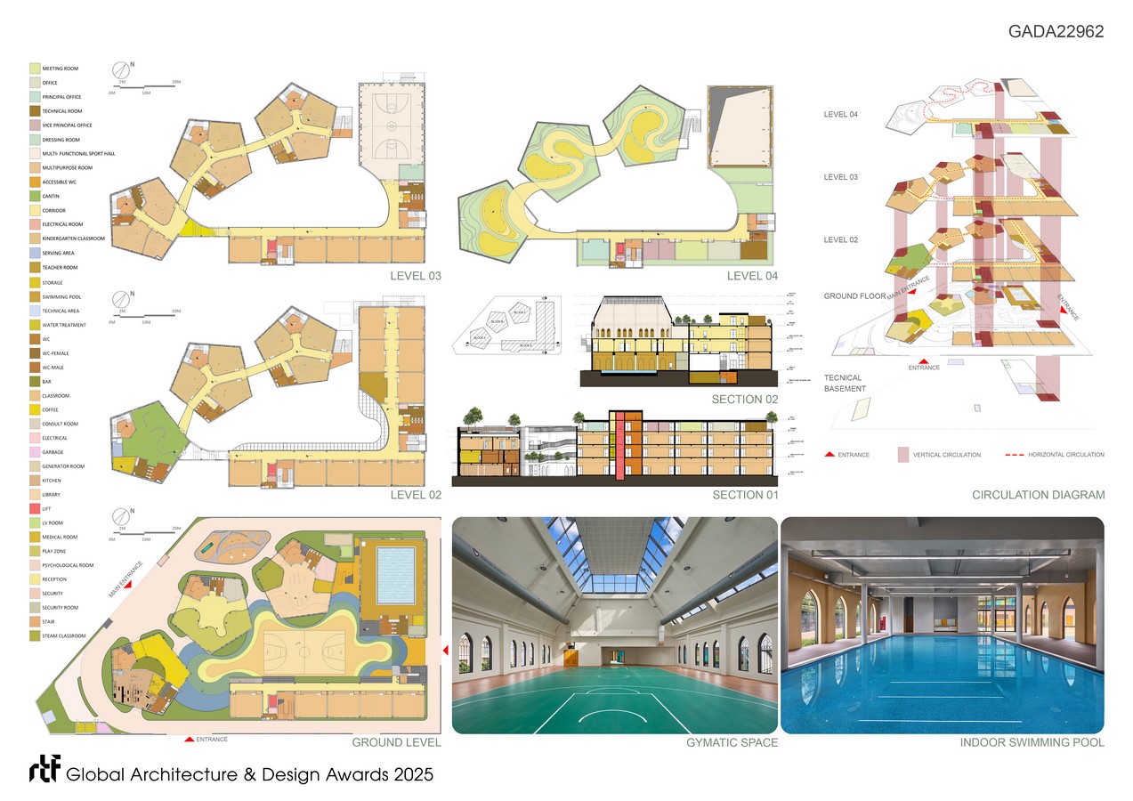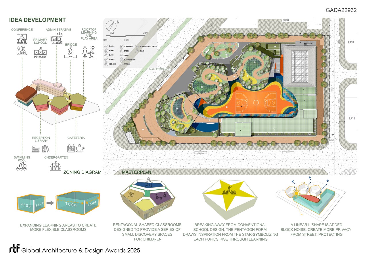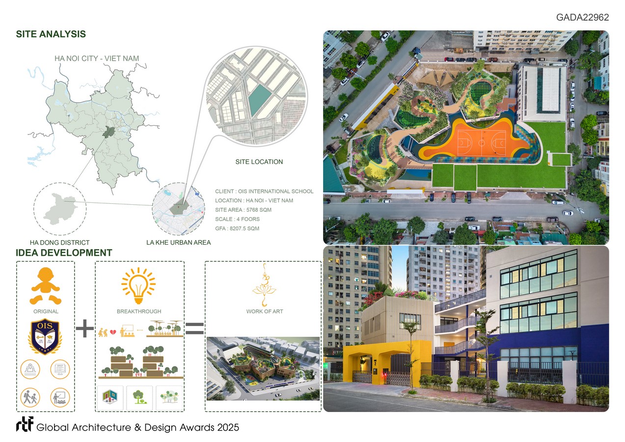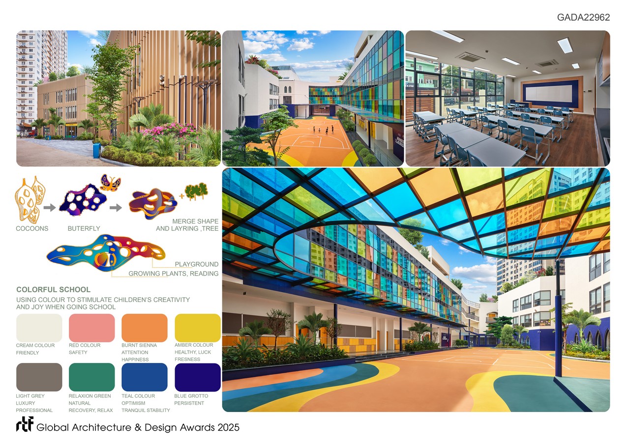 The breakthrough in the design is the ‘Classroom in the Forest,’ the Great Rooftop Garden where pupils can attend classes when indoor classrooms become monotonous. This transformative approach will change the conventional operation, encouraging students to spend more time outdoors, eagerly anticipate school, and be excited about each forthcoming outdoor class. Consequently, teachers will become more passionate, emotionally connected with children, and creative in organizing teaching programs.