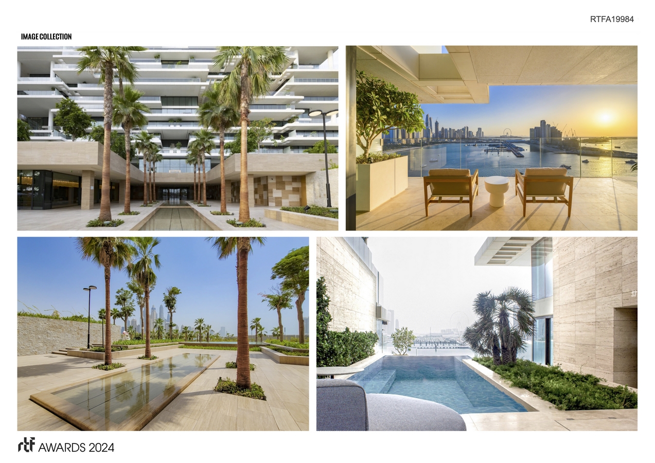 It is the first building in Dubai to promote the use of outdoor space in Dubai, whereby each apartment is designed with an equal amount of indoor and outdoor space. The design of the building begins as the slabs of each apartment are pushed and pulled across levels, creating a private outdoor space, proportional to the size of the unit. The residences are arranged methodically, through view and adjacency studies, in order to achieve unobstructed views while maintaining the privacy of each residence. In addition, each apartment has an open terrace with views across the palm to the North and the Marina to the south for an unprecedented interior environment that transcends its landscape.