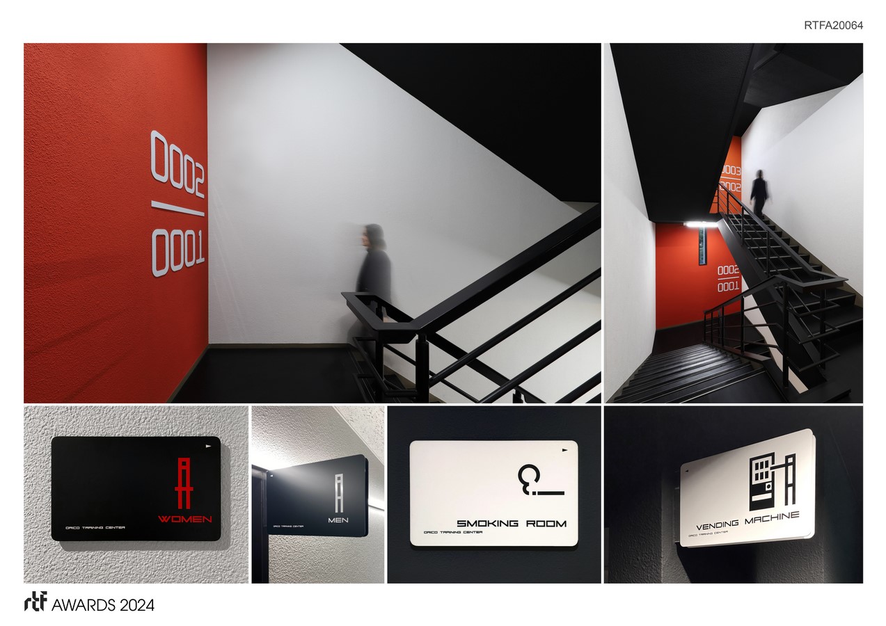Orient Corporation is a leading credit company with over 11 million members. This project revitalizes a training center that, after 30 years, had shown signs of aging. In doing so, it sought to imbue the entire space with Orico’s identity, anchored by the black of the ‘pitch-black universe,’ representing the logo’s origin, and the energetic orange of the sun, guiding the visual identity (VI) development.