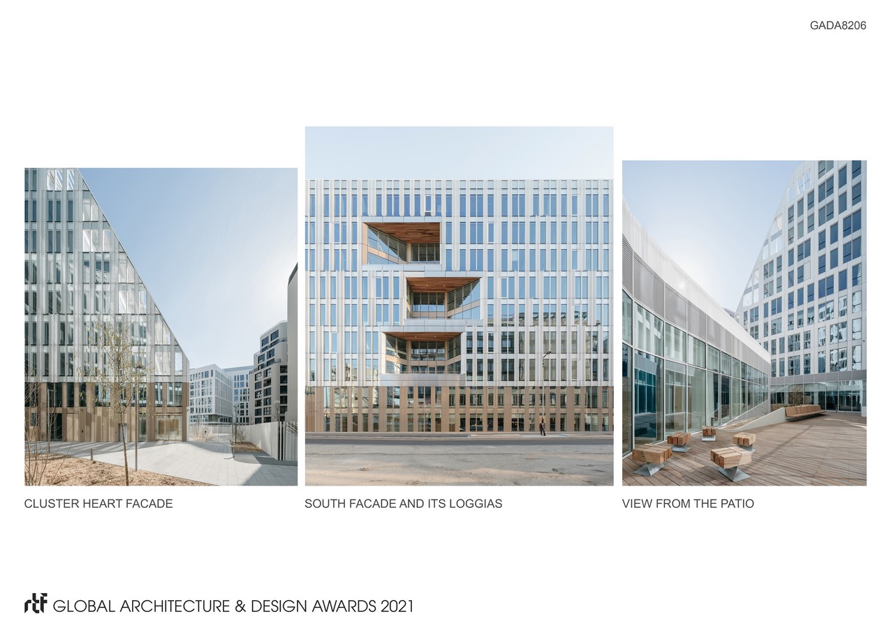 The project was designed with a bioclimatic approach. It incorporates geothermal energy, connection to urban heating networks, integrated photovoltaic panels, natural light, and rainwater recovery.