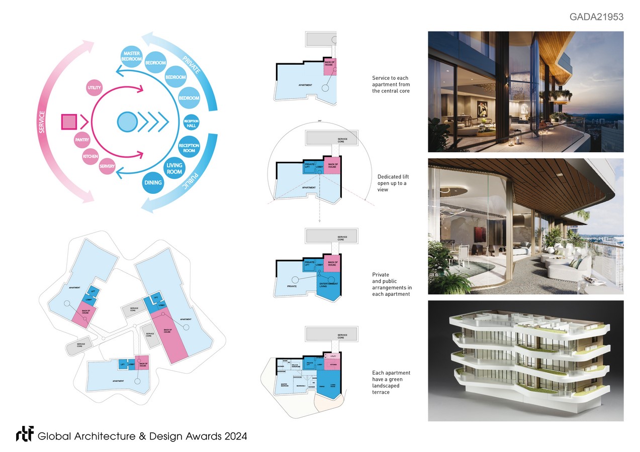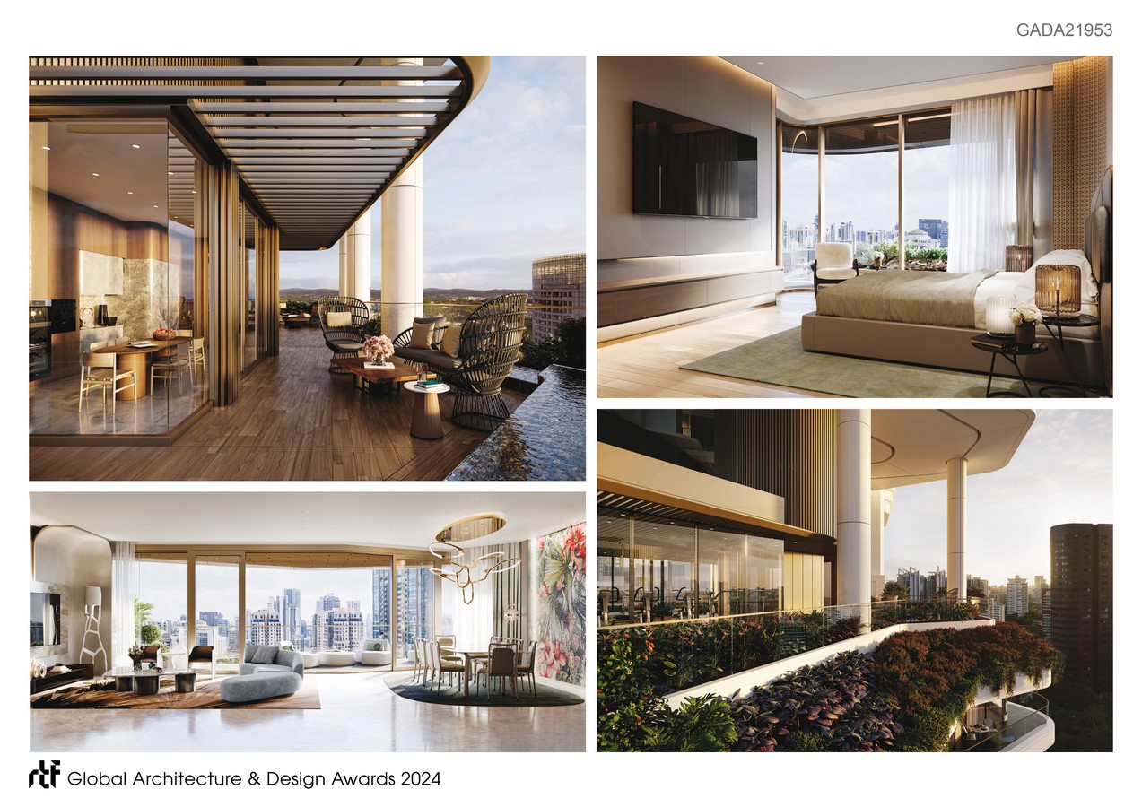 54 residences, ranging from 2 to 5 bedrooms, have been included across 21 storeys, each bathed in light and benefitting from unique 270-degree panoramic views across the city’s skyline through expansive floor-to-ceiling windows. The spacious apartments offer refined layouts including dynamic private and entertaining spaces that seamlessly connect to generous planted terraces and gardens, marrying the outdoor environment with the comforts of home.