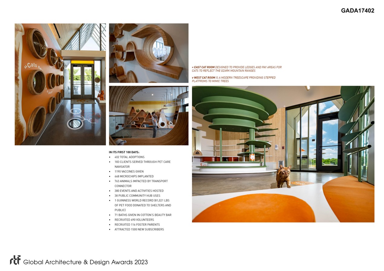 Instead of hiding on the edge of town, this building is centrally located and easily visible and accessible to all. It houses a medical center for animals passing through and for local rescues, a community center filled with engagement activities for the locals and a support center for all the foster parents and animals. Events such as Knitting with Kittens, Foster Fridays and Adoption Saturdays keep them connected to the community and make this a model for future centers worldwide.
