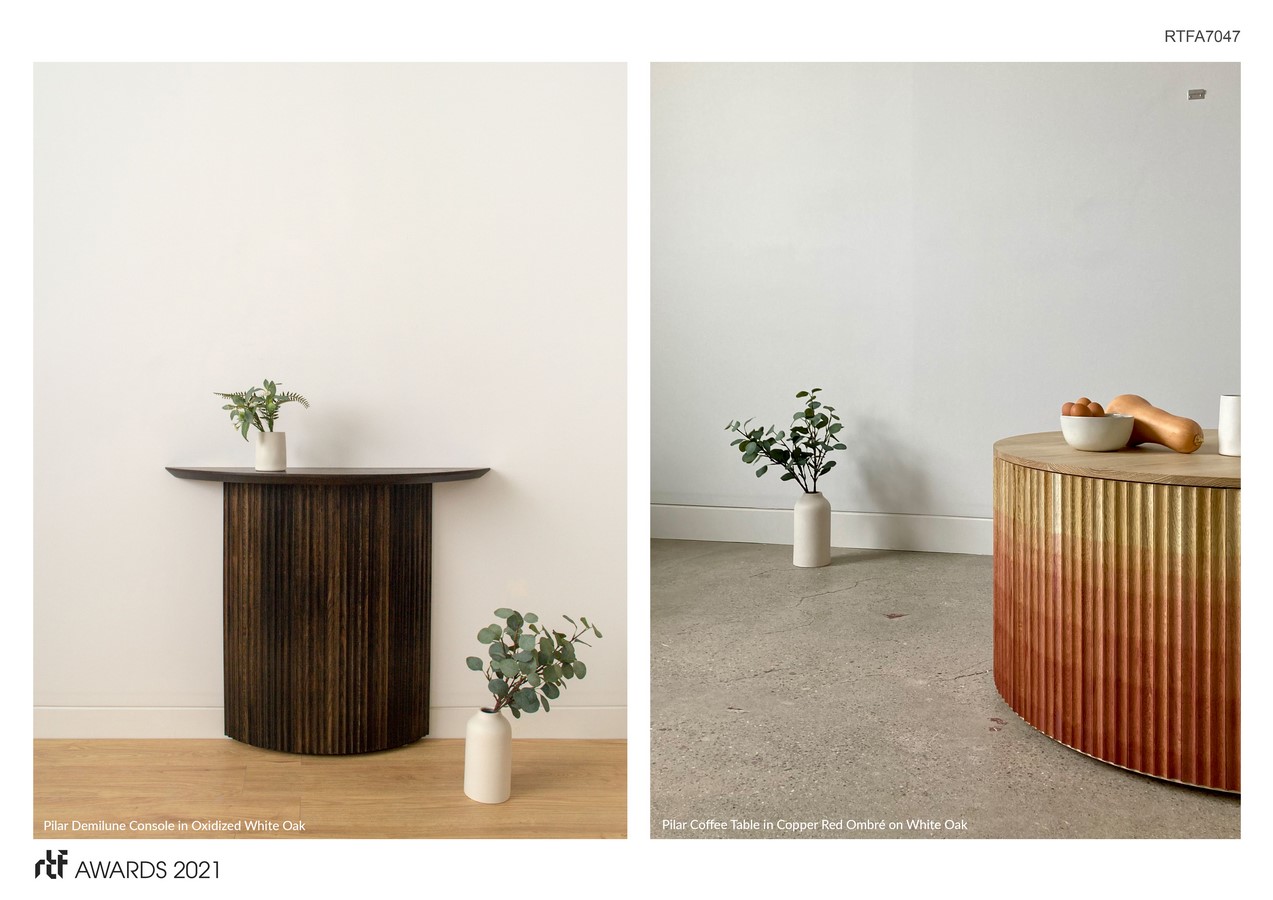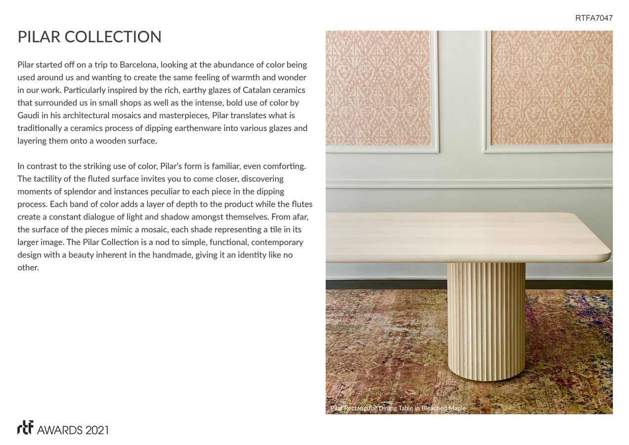 In contrast to the striking use of color, Pilar’s form is familiar, even comforting. The tactility of the fluted surface invites you to come closer, discovering moments of splendor and instances peculiar to each piece in the dipping process. Each band of color adds a layer of depth to the product while the flutes create a constant dialogue of light and shadow amongst themselves. From afar, the surface of the pieces mimic a mosaic, each shade representing a tile in its larger image. The Pilar Collection is a nod to simple, functional, contemporary design with a beauty inherent in the handmade, giving it an identity like no other.