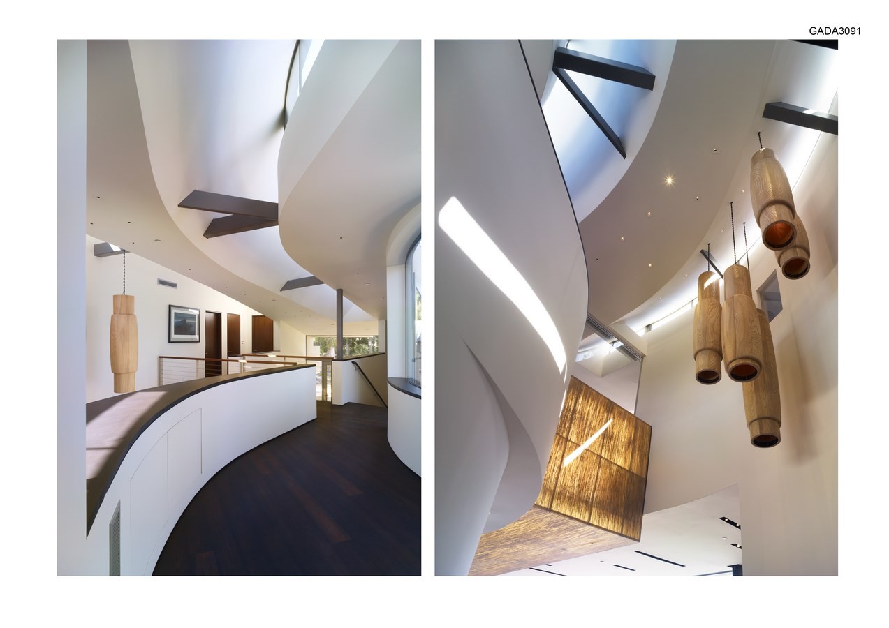 The major shifts in geometry relate to the panoramic views, with a narrative sequence that echoes the shoreline beyond. A fluid hallway serves as the nexus of the house, while the expansive living areas opens up entirely to the exterior, so that the house is connected to the exterior both in its narrative sequence and its physical presence.