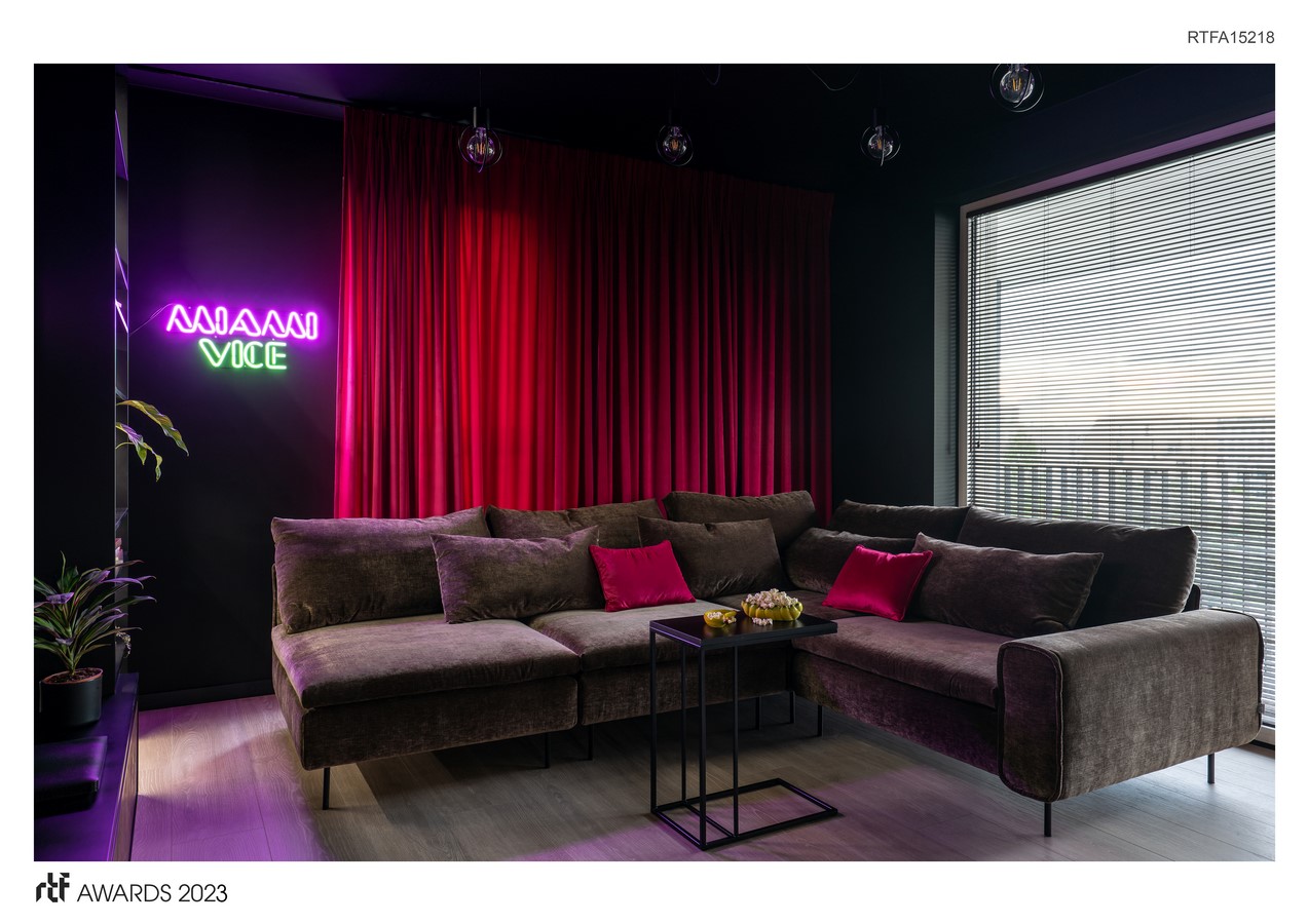 Neon lights are an inherent part of the nightlife in a city, clubs full of music, evening outings to the cinema, and atmospheric walks through illuminated streets. The KODO architects took the best from those inspirations, creating a unique arrangement of an almost 80 square metre Warsaw luxury flat that is full of mystery.