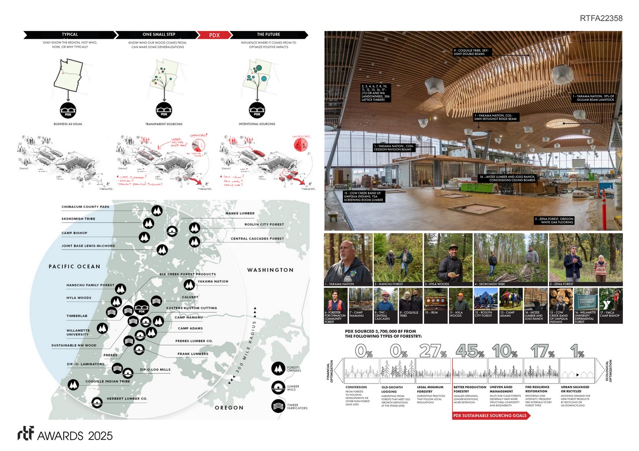 Inspired by a walk in the forest, the Main Terminal Expansion modernizes Portland International Airport (PDX) and creates a new gateway to the Pacific Northwest that embraces the region’s environment and industry.