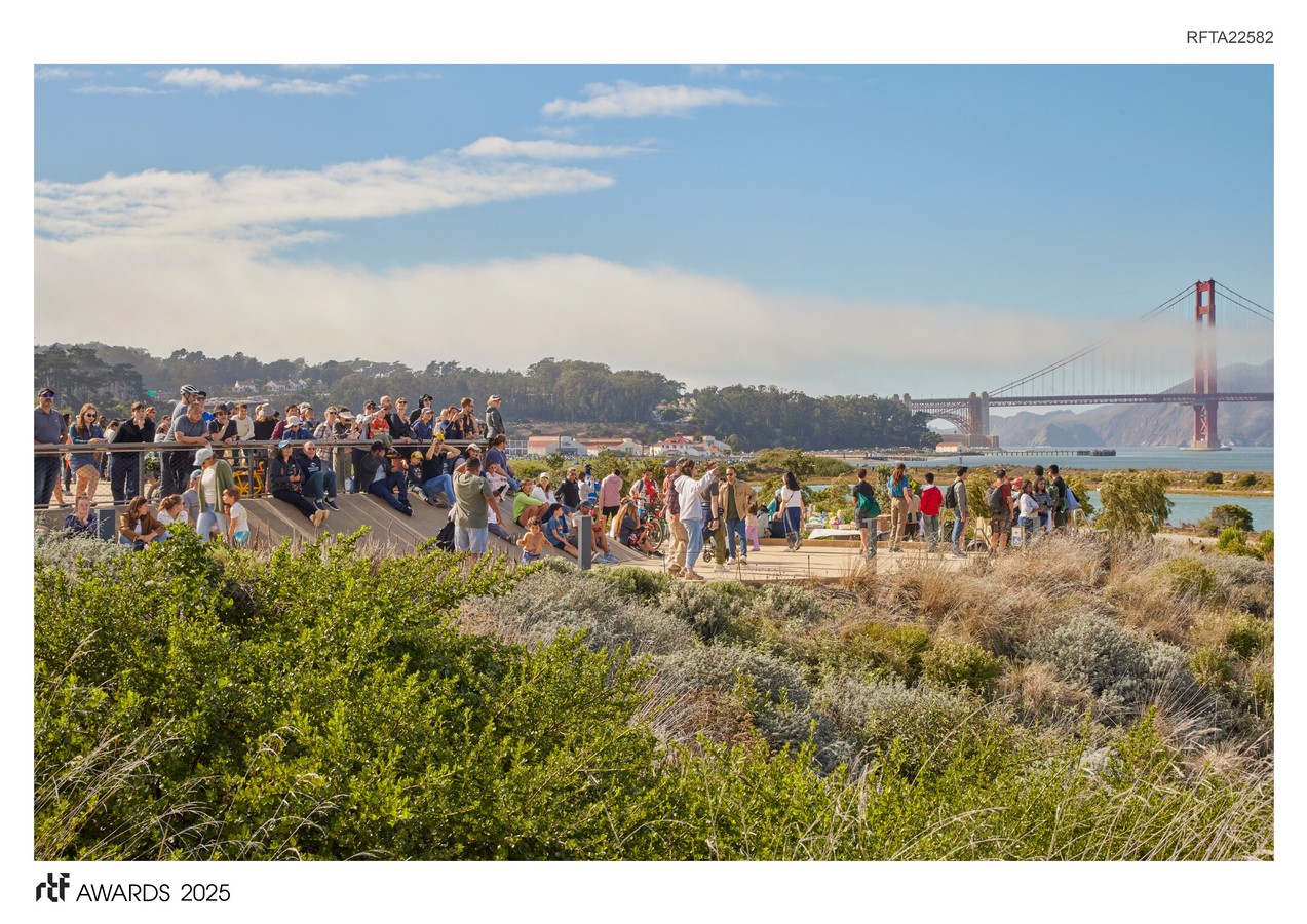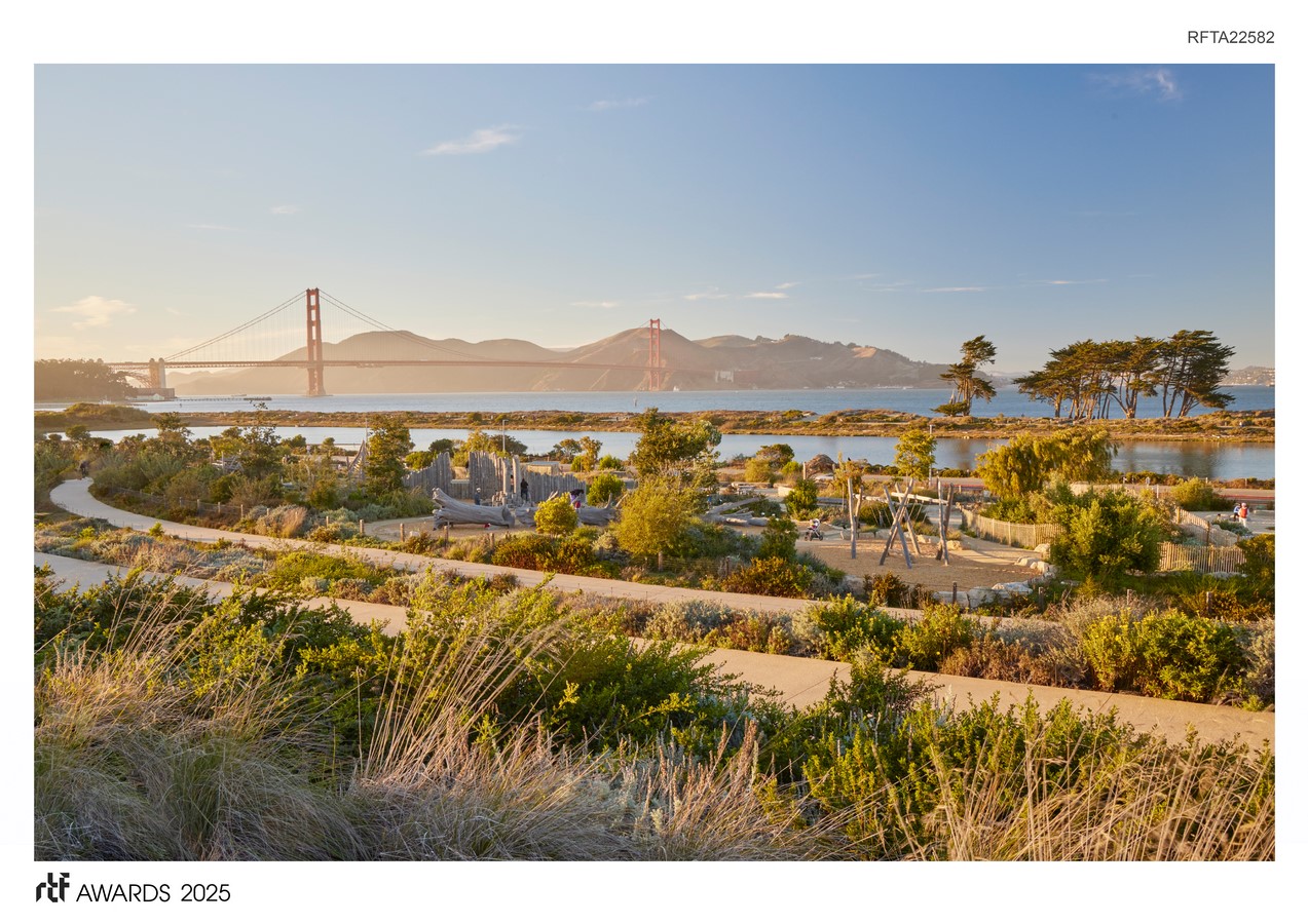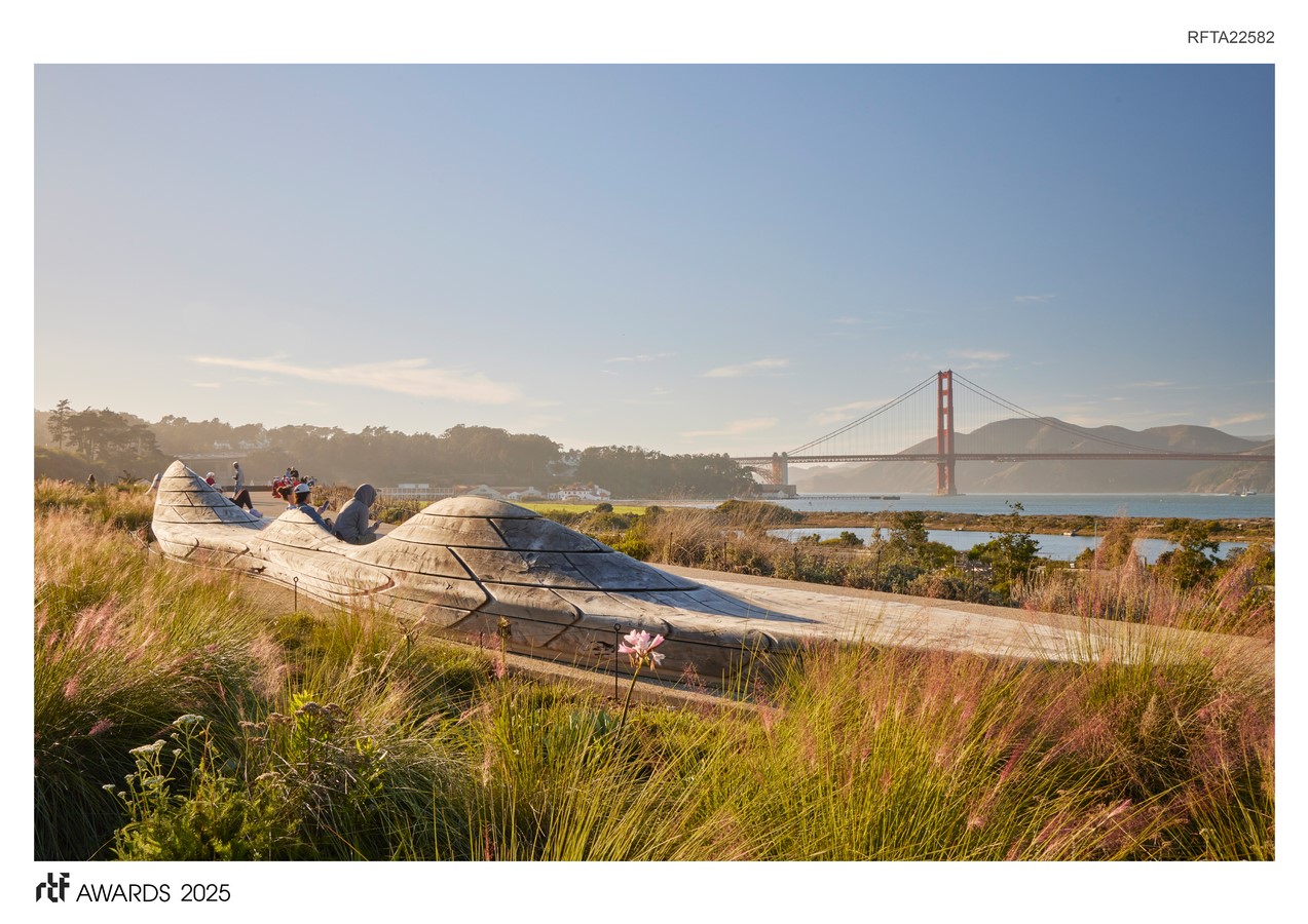 The park balances essential community spaces, including a new transit center, visitor center, campfire circle, and youth campus with an innovative play and learning environment, with open space inspired by the sites natural and cultural history. Working in an incredible setting with a 360-degree panoramic horizon, the design focuses on choreographing each pathway, furnishing and feature so that every perch feels like the absolute best place to view the Golden Gate Bridge and Bay, while prioritizing accessibility over the 40-foot grade change.