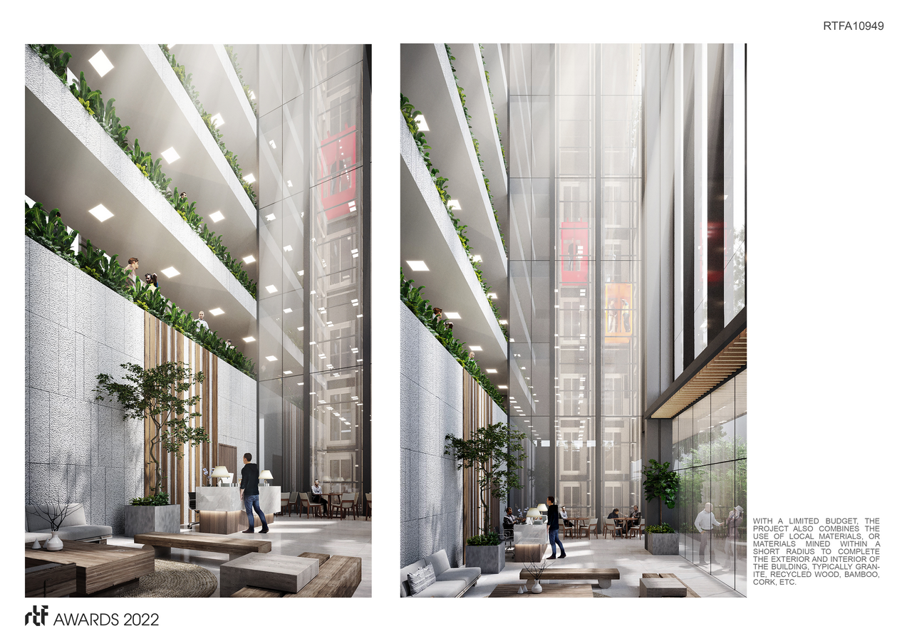 The project is a 19-story block consisting of 15 floors and 4 basements, the 1st floor is a combined office space, the 2nd to 5th floors are offices, the 6th floor is a shared office space (coworking), The 7th floor is the restaurant, cafe, and technical area, the 8-14th floor is the serviced apartment area. In particular, the project’s large potted plants are located on the 6th floor and the swimming pool space is located on the 15th floor.