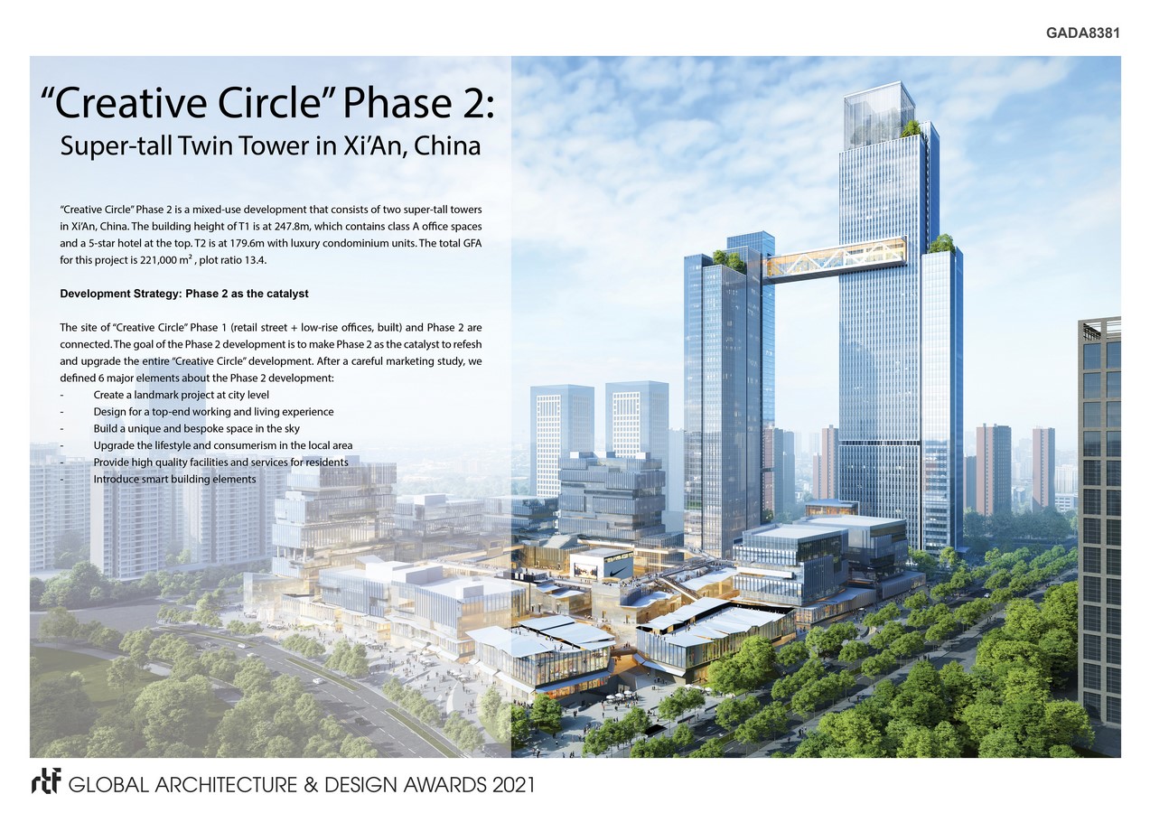 The site of “Creative Circle” Phase 1 (retail street + low-rise offices, built) and Phase 2 are connected. The goal of the Phase 2 development is to make Phase 2 as the catalyst to refesh and upgrade the entire “Creative Circle” development.