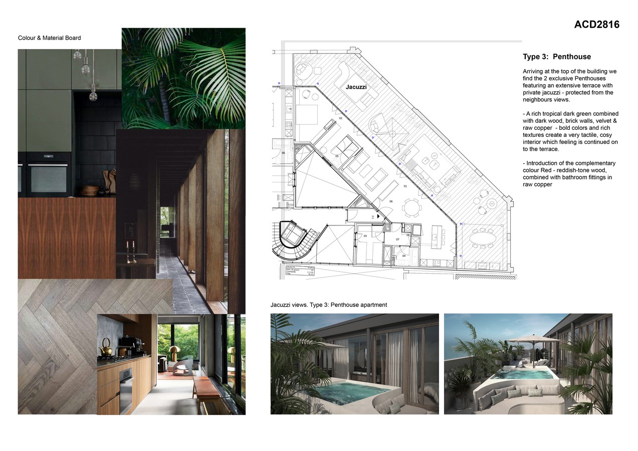 Arriving at the top of the building we find the 2 exclusive Penthouses featuring an extensive terrace with private jacuzzi – protected from the neighbours views.