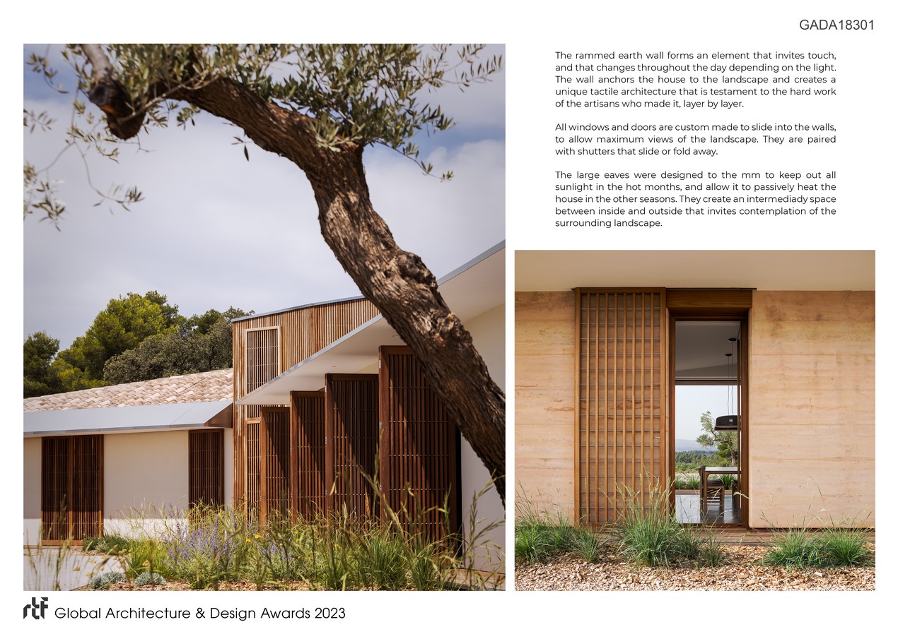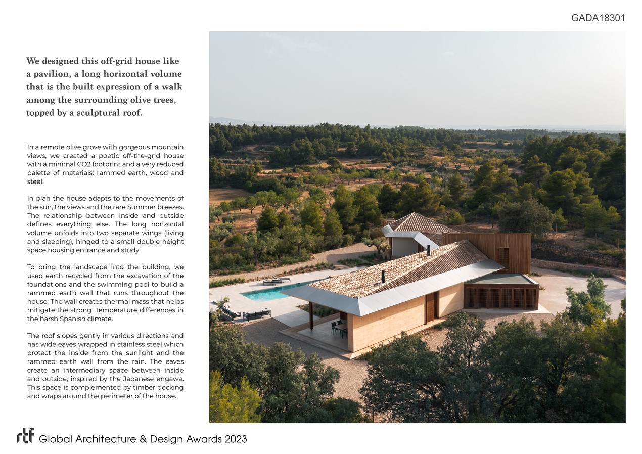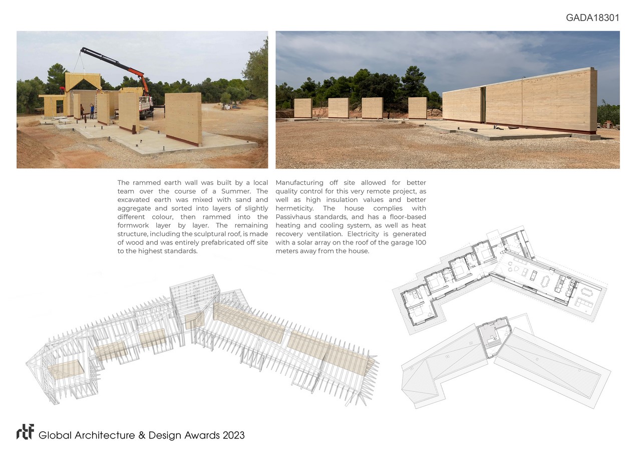 Consultants: Albert Admetlla (wooden loadbearing construction), Fetdeterra (rammed earth engineering), Ruben Esteve (surveyor, Passivhaus execution)
