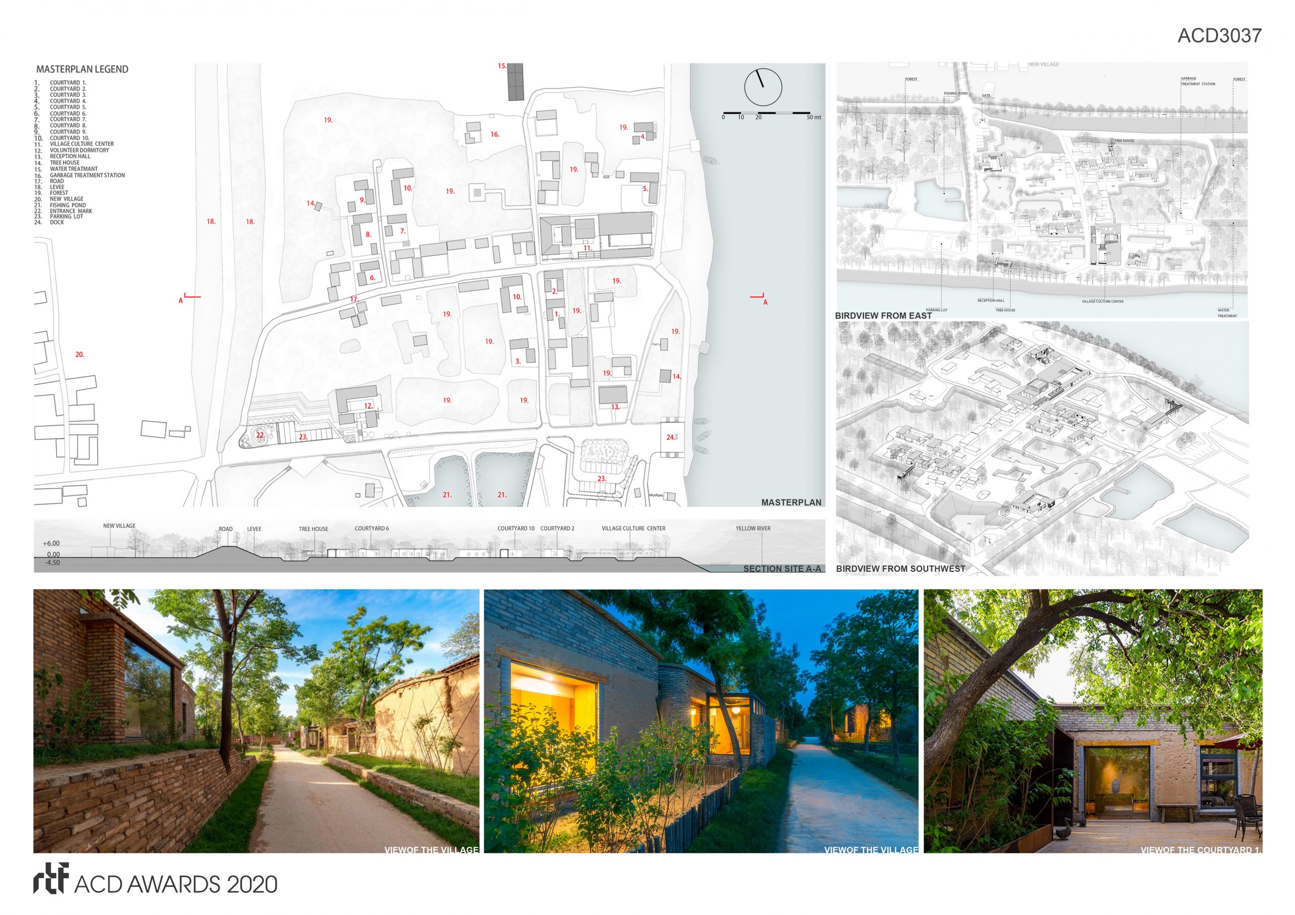 The project consists of ten courtyard hotels transformed from abandoned local residential buildings, three public cultural buildings and two tree houses in the forest. The reconstruction also includes the infrastructure transformation of the whole village, the overall landscape protection and organic renewal of the village.The reconstruction plan emphasizes the close relationship between the village and the Yellow River, dike, forest and farmland, and respects the original texture and landscape of the village.