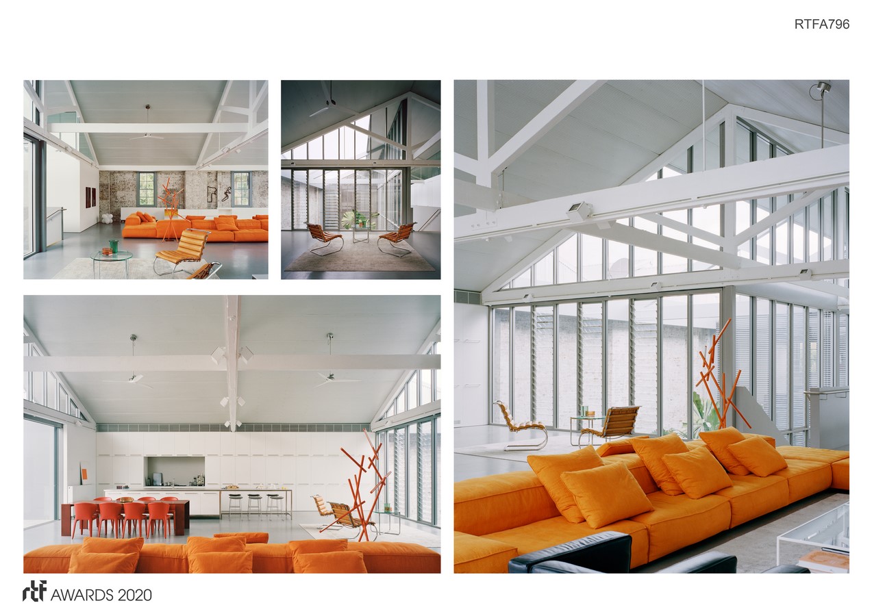 New work is complementary but clearly distinguished from original fabric through a rigorous application of the concept of retention, recycling and reinforcing the original form and spatial qualities of the warehouse while inserting a series of refined and elegant new elements to contrast with and complement the original, with no sentimental or nostalgic reinvention of a warehouse aesthetic.