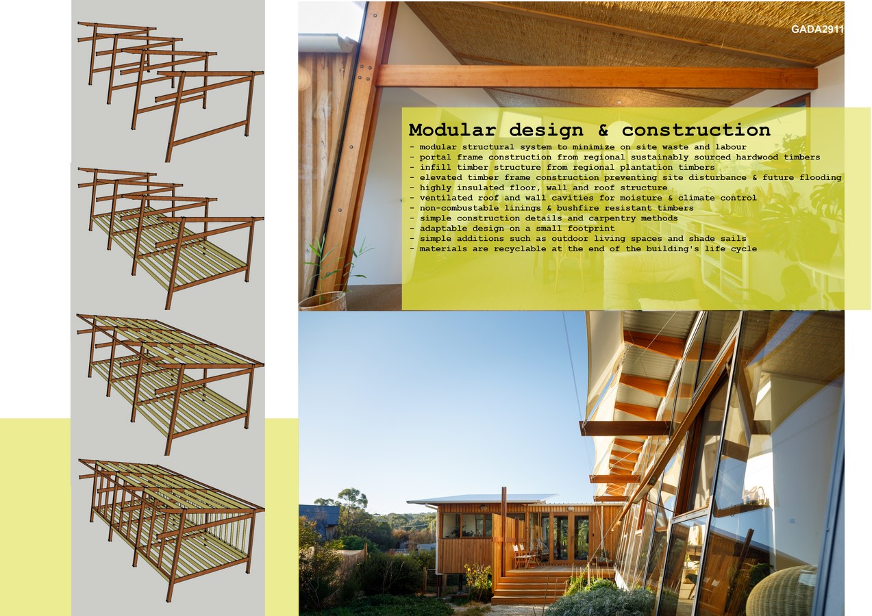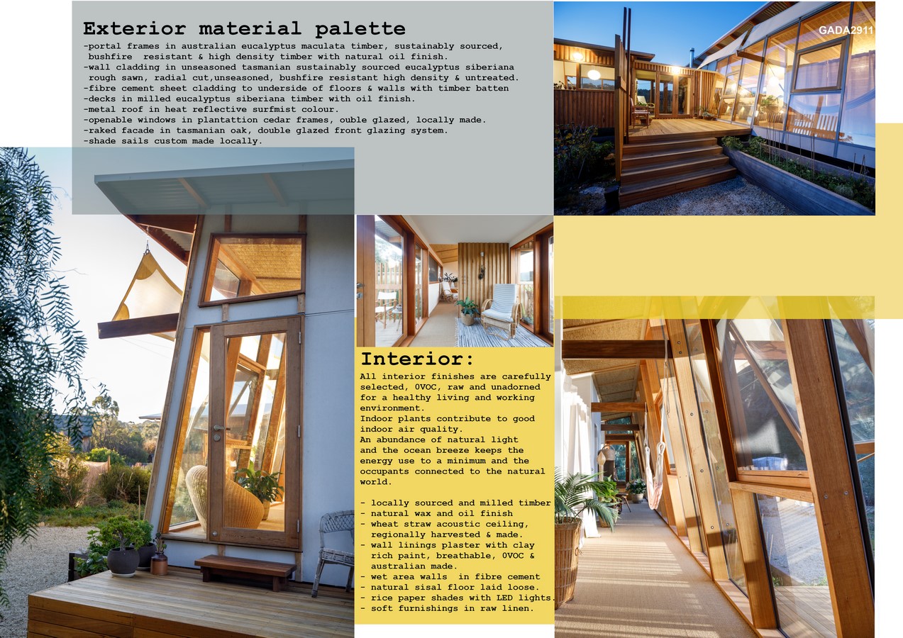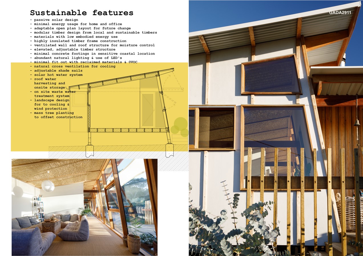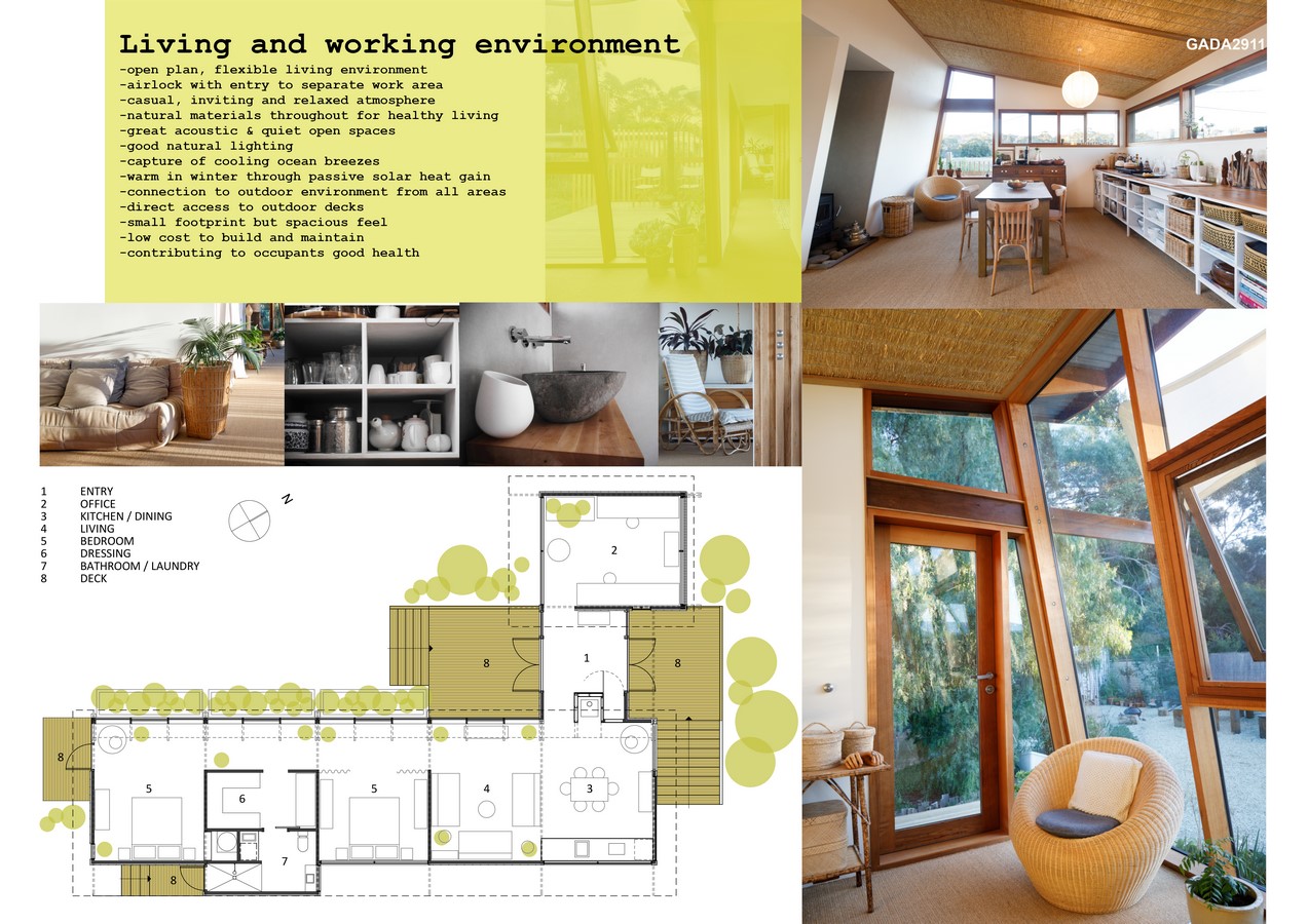 - Minimal ongoing energy use by applying passive solar principles and natural ventilation.