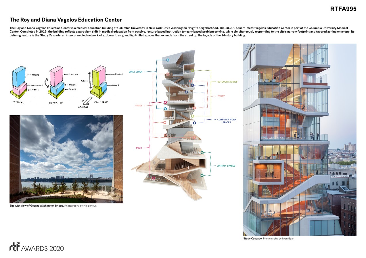 The Roy and Diana Vagelos Education Center is a medical education building at Columbia University in New York City’s Washington Heights neighborhood. The 10,000 square-meter Vagelos Education Center is part of the Columbia University Medical Center.