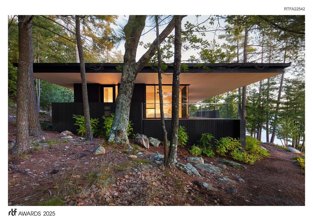 This intimate family cottage is designed as a refuge, offering seclusion while maintaining a strong connection to its breathtaking surroundings in Muskoka, Ontario.